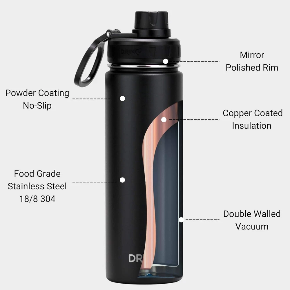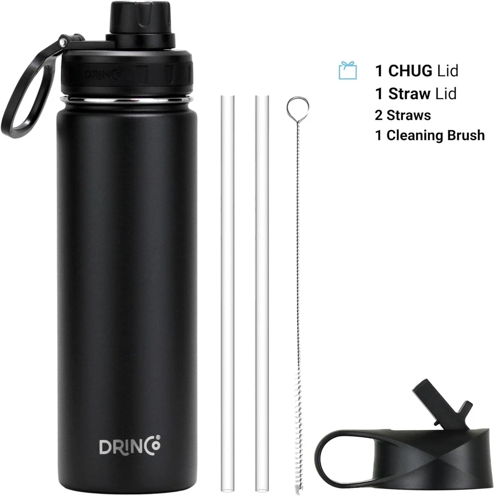 Store New Arrivals Add to Favorite View Feedback Contact Stainless Steel Water Bottle Spout Lid Vacuum Insulated Double Wall Water Bottle Wide Mouth (40Oz 32Oz 22Oz 18Oz 14Oz) Leak Proof Keep Cold Sport Camping Hiking (22 Oz, 22Oz Black) Description Age Range Description Kid,Adult Capacity 22 Fluid Ounces Number of Items 1 Material Type Stainless Steel Theme Sport With Lid Yes Item Dimensions W x H 3"W x 10"H Is the item dishwasher safe? Yes Cap Type Straw Cap Included Components Lid, Straw Item Weight 1 Pounds Special Features Double Wall,Scratch-Resistant,Rust Resistant,Cold 24 Hours,Hot 12 Hours,Lightweight,Leakproof Special Feature Double Wall,Scratch-Resistant,Rust Resistant,Cold 24 Hours,Hot 12 Hours,Lightweight,Leakproof Color 22oz Black Recommended Uses For Product Water Is the item microwaveable? No Base Diameter 3 Inches Product Care Instructions Dishwasher Safe Size 22 oz ✅ Premium Quality: The Drinco water bottle is constructed with rust-resistant (18/8) food-grade stainless steel double walled body, a material lauded for its durability. The powder coating paint treatment makes the insulated water bottle virtually indestructible, scratch resistant and restricts temperature transfer. ✅ Superior Insultation: Stainless steel water bottle construction made from copper coating helps the water bottle to retain the cold or heat. Effective insulation with a sport lid helps to maintain the temperature up to 24 hours for cold and 12 hours for hot beverages. These premium quality water bottles are safe and easy to clean. ✅ Compatible & User-Friendly: Our vacuum insulated water bottle is designed with a wide mouth simple modern silhouette and comes with a textured grip for sweat-free. It comes with a sport top which keeps your beverage safe and its compact shape fits into your hand. ✅ Environmental-Friendly: Take our insulated water bottle along with you and keep yourself hydrated and enjoy every sip of your beverage. Our product is BPA free and complies with FDA standard. Say no to one-time use cups with these insulated bottles. It's less harmful to the environment and is a better option than those single-serving containers. ✅ Satisfaction : Drinco promises to deliver premium quality and service to our customers, please feel free to contact our customer service and you will get back to you within the same-day. Product Description The Drinco insulated water bottle is designed to keep your drinks either cold for summer time or hot in the winter. Our water bottles are constructed with double wall vacuum insulated technology with food grade stainless steel generally called 304 or 18/8. The Drinco stainless steel water bottle comes with various sizes and straw lid, flip lid and twist lid constructions for you to take on adventure outdoor activities, workout from the gym or home, road trip, commute or simply at home. They are leak proof and mostly fit in the car cup holder. We provide the best quality water bottle and value to our customers. It matches to the industry standard with enhanced copper coating for thermal retention, durability on surface powder coating and mirror polished rims. We proudly to stand by our commitment of the water bottle brand you can trusted. Take Your Insulated Stainless Steel Water Bottle With You Everywhere You Go. SUPERIOR INSULATION Double walled vacuum insulated stainless steel water bottle construction made with copper coating helps the bottle to retain the heat. Effective insulation with a sport lid helps to maintain the temperature up to 24 hours for cold and 12 hours for hot beverages. These premium quality water bottles are safe and easy to clean. PREMIUM QUALITY The Drinco insulated bottle is constructed with rust-resistant (18/8) food-grade stainless steel body, a material lauded for its durability. The powder coating paint treatment makes the bottle virtually indestructible, scratch resistant and restricts temperature transfer. COMPATIBLE & USER-FRIENDLY Our vacuum insulated water bottle is designed with a wide mouth simple modern silhouette and comes with a textured grip for sweat-free. It comes with a sport top, straw lid, flip lid or twist lid which keeps your beverage leak proof and its compact shape fits into your hand. ENVIRONMENTALLY- FRIENDLY Take our water bottles along with you and keep yourself hydrated and enjoy every sip of your beverage. Our product is BPA free and complies with FDA standard. Say no to one-time use plastic bottle replace with these insulated water bottle. It's less harmful to the environment and is a better option than those single-serving containers. SUPERIOR INSULATION PREMIUM QUALITY COMPATIBLE & USER-FRIENDLY CHERISH THE EARTH Stay Hydrated!!! Stay hydrated in style with a sleek water bottle that takes care of your favorite drink. Drinco insulated water bottle is made of stainless steel and have double-walled insulation, which means your beverage will stay hot or cold for hours. Easily fill your water bottle with ice and clean it through the wide mouth opening. Shop our huge selection of styles, sizes and colors to find the one that is perfect for your lifestyle. Product Safety Your water bottle is made with best care. Materials are selected from food grade selection that comply with regulation and inhouse rigours testing standards with best manufacturing process. We take the quality to our heart that we understand it is the foundation of Drinco brand. Who Are We Drinco is based in California and we are passionate about design and develop drinkware product that your can enjoy everywhere, keep it cold and hot for you. We are in the business to provide our valuable users the best experience, fashionable design and trusted quality. To our team, where we can exerice our innovated ideas. To our community that we share our success and helping others. To environment that reduce waste and reusable products. Customer Experience Your satisfaction is our top priority, and we are committed to providing top experience to