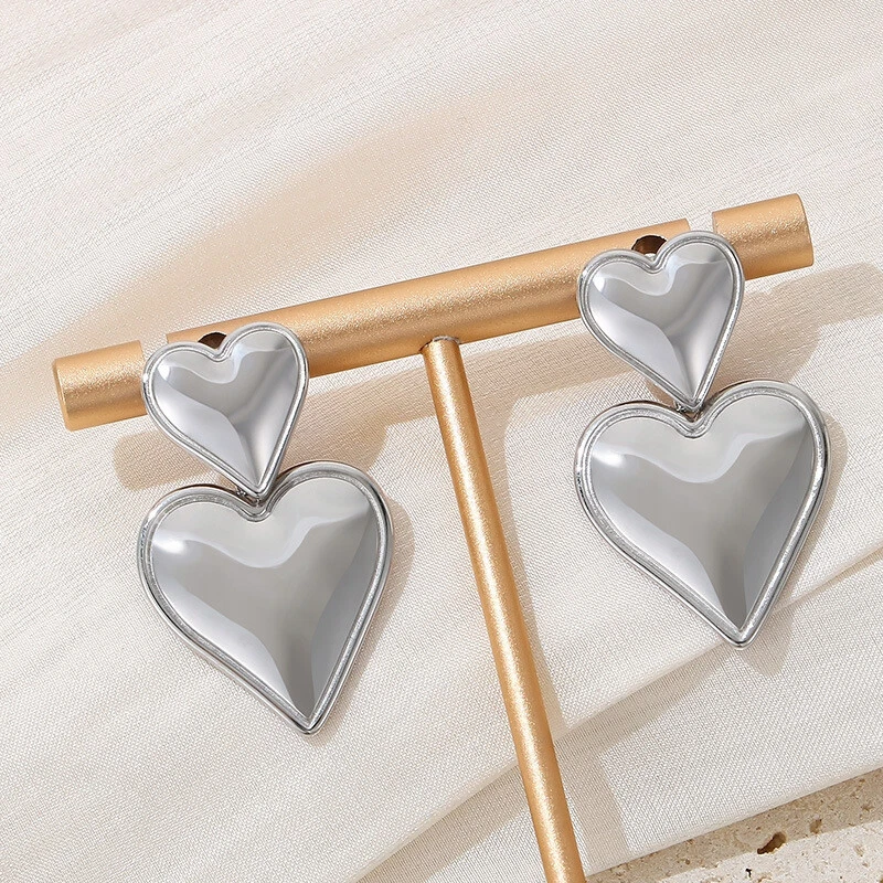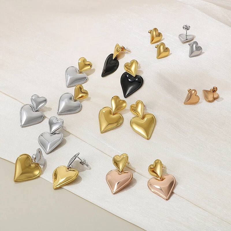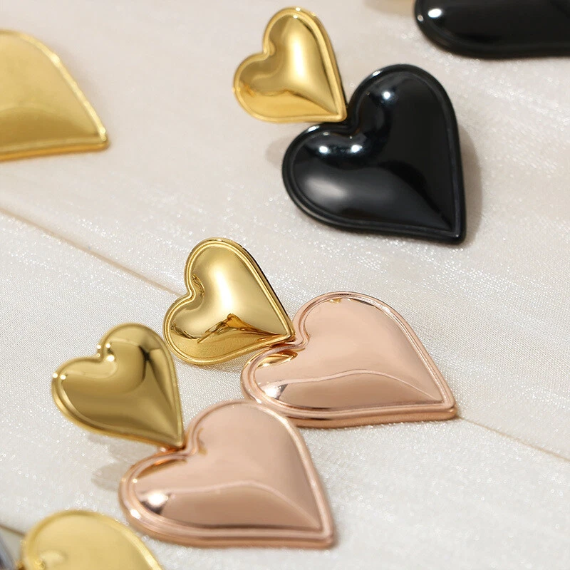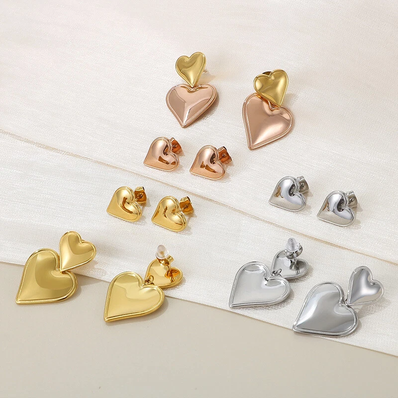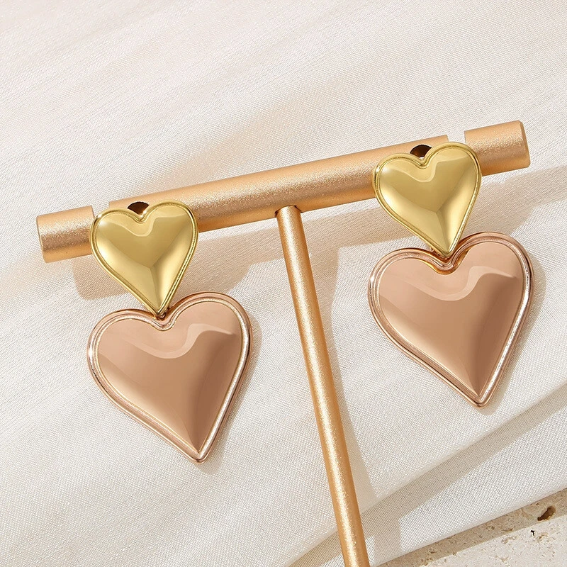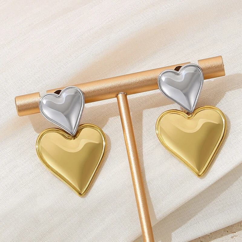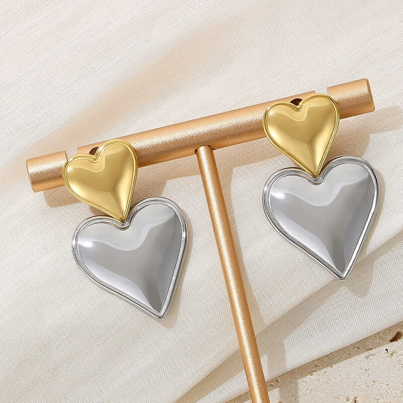 Stainless steel love stitching earrings 8K gold titanium steel double earrings