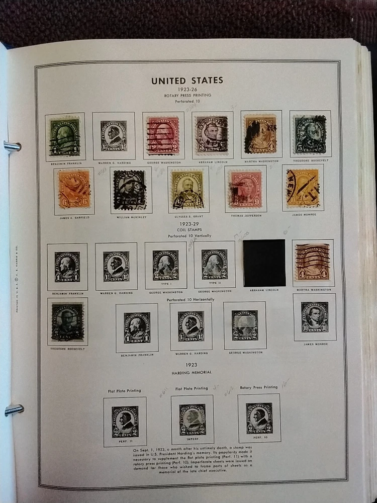 Up for sale is a Harris liberty stamp album with some nice older stamps some mint some used stamps are hinged,binder in fair condition pages have pencil writing on them pages go to 1981 with some stamps on later pages I only took photos of what I thoughts have the most valve this is a liquidation sorry no returns