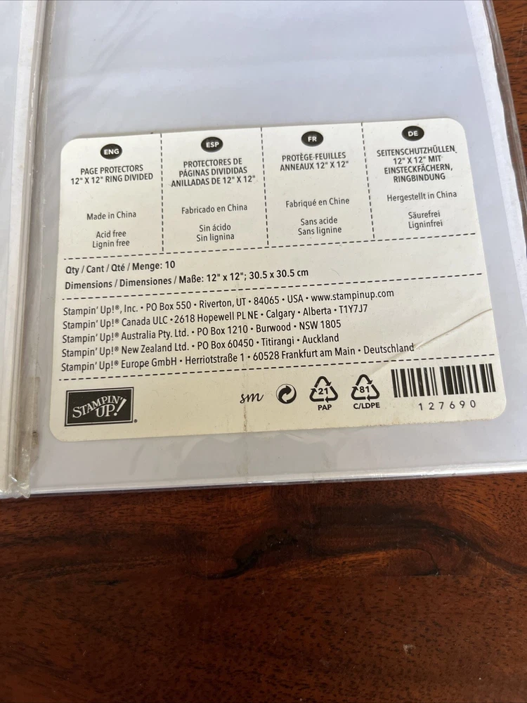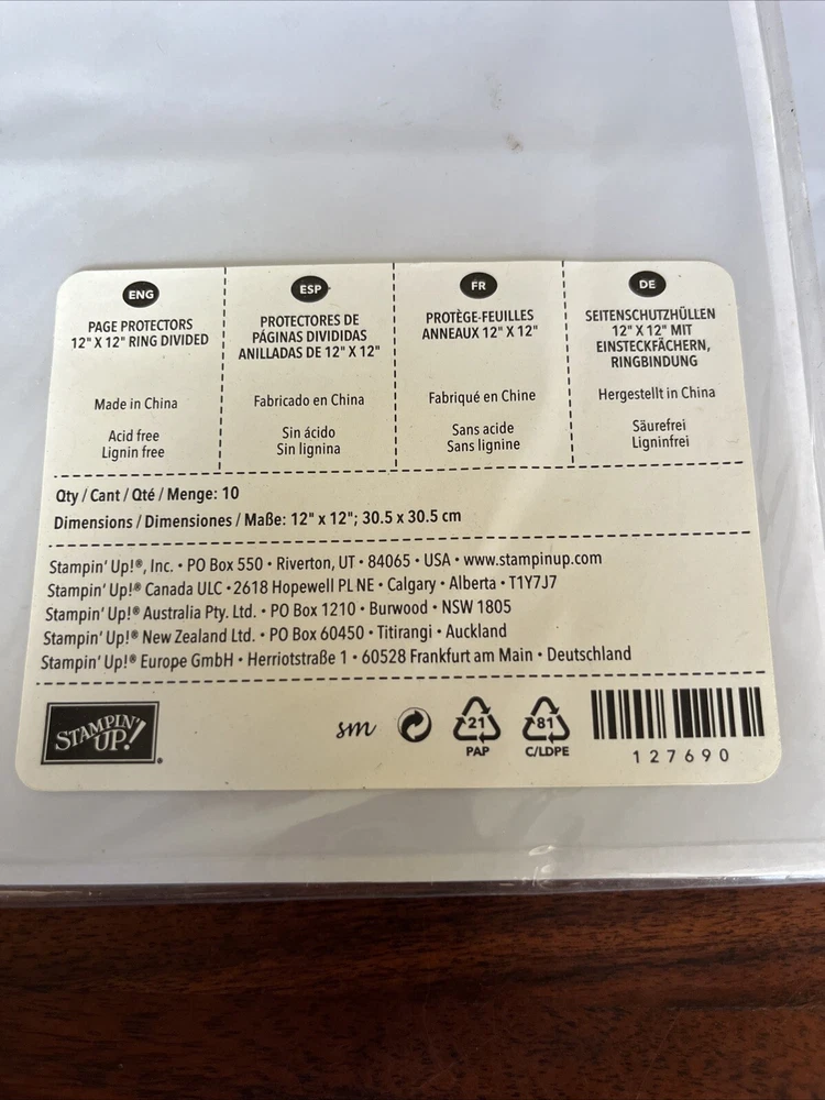 Stampin Up! 2 Packages Page Protectors 12x12 Ring Divided Sheet Protectors New