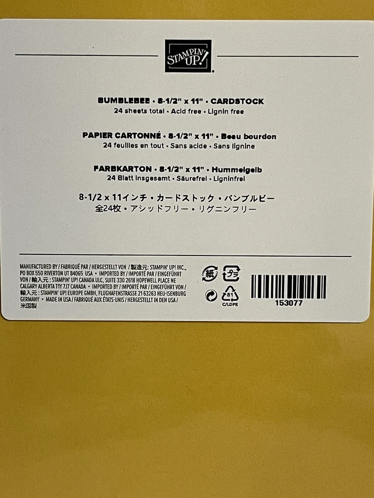 Brand: Stampin' Up! Model: Bumblebee Type: Card Stock Color: Yellow Size: 8 1/2” X 11”