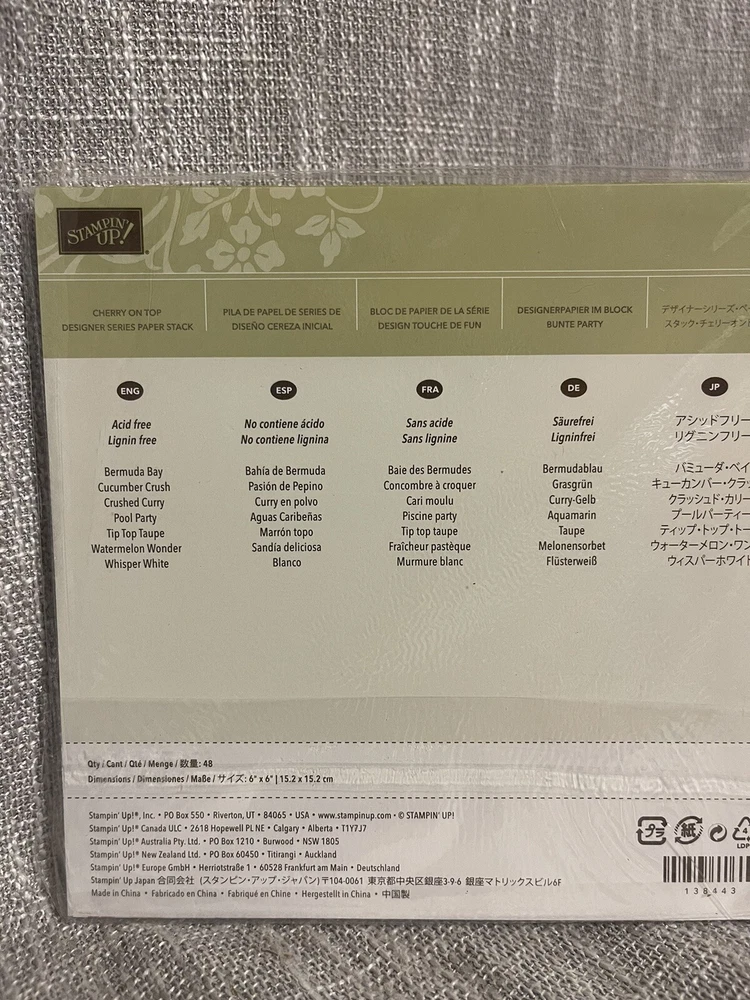 Stampin’ Up! Cherry On Top Designer Series Paper Stack 6 X 6 Full Sealed