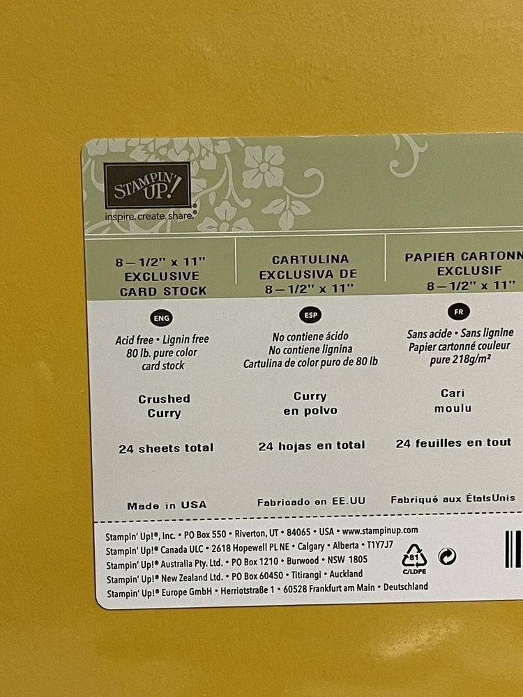 Stampin' Up! Crushed Curry Cardstock Paper 8.5" x 11" 24 Sheets Yellow Mustard