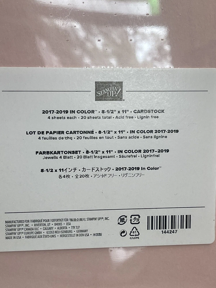 Stampin Up In color card stock 8 1/2 x 11” 2017-2019
