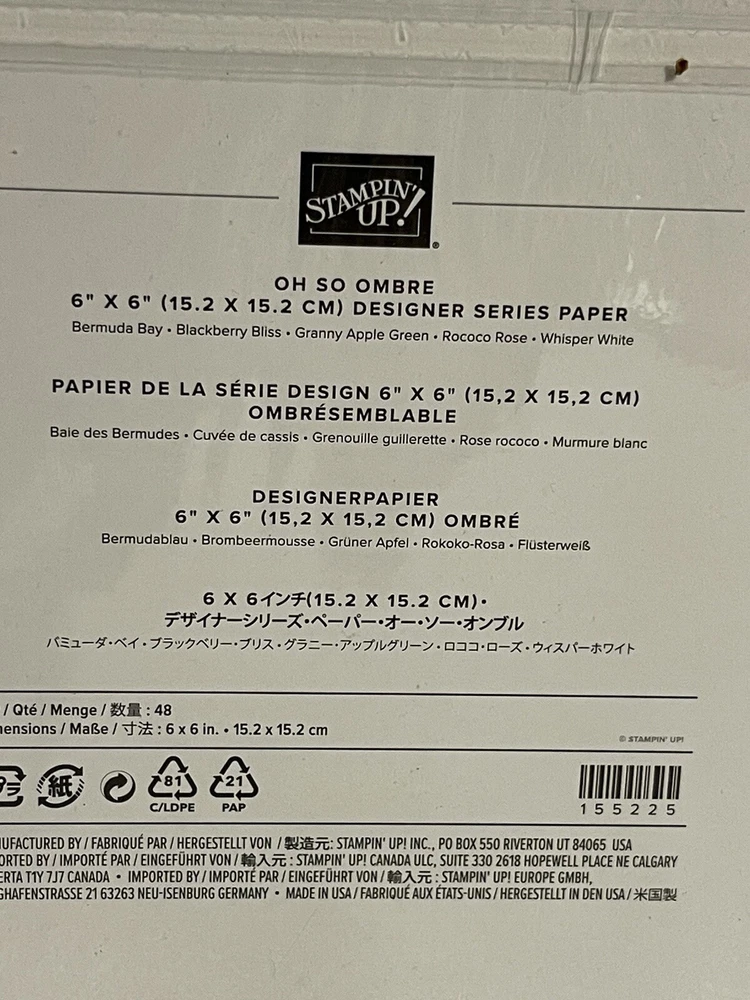 Stampin Up Oh So Ombre 6"x6" Designer Series Paper 48 sheets NEW. Condition is New. Shipped with USPS Ground Advantage.
