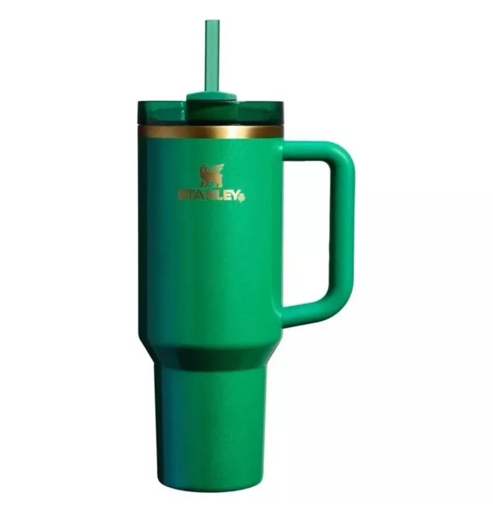 Celebrate St. Patrick's Day in style with this limited edition Stanley 40oz Quencher tumbler. The solid color shamrock green design is perfect for showing off your holiday spirit, while the drink through lid and straw make it easy to enjoy your favorite hot or cold beverages. Crafted from durable stainless steel and BPA-free plastic, this tumbler is built to last. It features an insulated design to keep your drinks at the desired temperature for longer, and a comfortable handle for easy sipping. With a capacity of 40oz, it's perfect for teens, adults, and anyone else looking to add some holiday cheer to their drinkware collection.