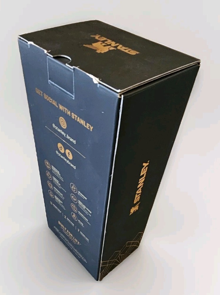 **NOTE: THIS LISTING IS FOR THE BOX w/ INSERTS ONLY. IT INCLUDES THE INNER DIVIDER/SUPPORT AND STANLEY PAPERWORK.** STANLEY LIMITED EDITION ART DECO COLLECTION QUENCHER FLOWSTATE H2.0 LIMITED EDITION 40 oz TUMBLER BOX. EXCELLENT CONDITION WITH ONLY SLIGHT WEAR FROM STORAGE. THIS ORIGINALLY HELD THE BLUSH GLOSS DECO COLORED TUMBLER. (See photos for details and condition) BOX MEASURES: 13" X 5.75" x 4.25" This is a great find if you're looking for a hard to find replacement box! Please review the measurements and photos very carefully. This is a used item, and some light wear should be expected unless otherwise noted. Please ask ANY and ALL questions prior to purchasing. This is being sold AS-IS, and NO RETURNS are accepted. Fully secure and insured shipping via USPS Mail. I SHIP FAST!! Please check out my other items for more awesome, vintage clothing and unique merchandise!!! Thanks for looking!