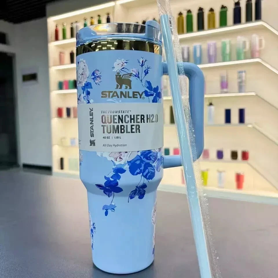 This cups come with straws and butterfly straw stoppers. Stanley x LoveShackFancy Floral Tumbler Collection – Limited Edition! Add a touch of elegance and whimsy to your drinkware collection with these limited-edition Stanley tumblers, designed in collaboration with LoveShackFancy. Featuring romantic floral patterns in soft pastels and topped with a unique bow-topped straw lid, these insulated tumblers are perfect for keeping your drinks hot or cold in style. Ideal for gifting or brightening up your daily hydration routine, these tumblers combine Stanley’s legendary quality with LoveShackFancy’s signature floral aesthetic. Specification Category: Drinkware Brand: Stanley x LoveShackFancy Color Options: Blue, Pink, Purple, white (all with floral patterns) Capacity: 40 oz Material: Stainless steel with insulated double-wall technology (Food-grade, BPA-free) Design Details: Floral patterns, bow-topped straw, translucent lid Features: Keeps drinks hot or cold for hours, easy-to-hold handle ✔ 【Premium Materials】 Crafted from high-quality 304 stainless steel, this tumbler is durable, eco-friendly, and reusable, offering a safe alternative to plastic. Each sip is pure and reassuring, making it suitable even for children. ✔ 【Elegant Straw and Lid Design】 With a thoughtfully designed straw and ergonomic handle, this tumbler fits securely in most car cup holders while keeping your hands dry and comfortable. Whether at home, camping, or on the go, it’s the ideal companion for savoring life’s moments. ✔ 【Versatile for All Occasions】 From lively parties to serene beach days, the office to home, this tumbler accompanies you anywhere. It also makes a thoughtful gift for family and loved ones on Valentine’s Day, Halloween, Thanksgiving, or Christmas. Beyond a tumbler, it’s a gesture of warmth and care. ✔ 【Double-Wall Insulation for All-Day Hydration】 With a 40oz capacity and dimensions of 27 x 10 x 7.5 cm, this tumbler features a tapered base that fits larger cup holders (7.5 cm+). Keep hydrated all day and enjoy your drink at just the right temperature. ✔ 【Long-Lasting Temperature Retention】 Your perfect travel companion, keeping drinks warm for up to 5 hours and cold for up to 8 hours, allowing you to enjoy favorite beverages at leisure. The vacuum insulation ensures the double-walled design remains cool to the touch, letting you drink comfortably without any worry.