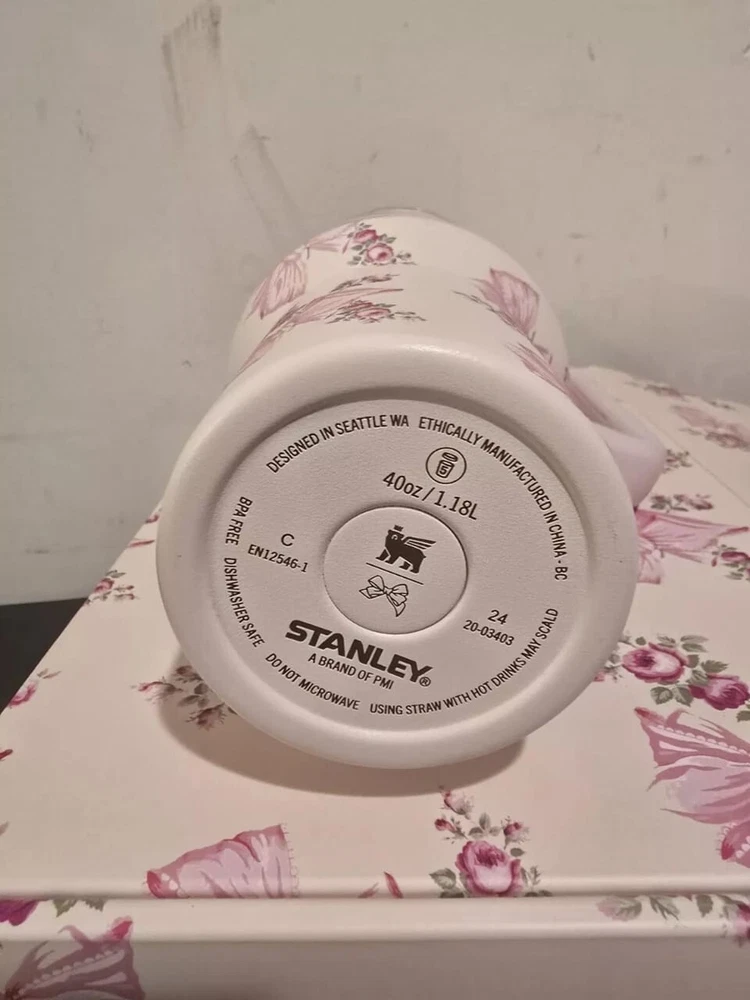Get ready for the holiday season with the Stanley x Love Shack Fancy Tumbler in Rosa Beaux Pink! This 40oz tumbler is perfect for keeping your hot or cold beverages at the perfect temperature, and its stainless steel material ensures durability. The tumbler features a festive holiday theme and is branded with the Stanley logo. This tumbler is a must-have for any Stanley fan or Love Shack Fancy enthusiast. Whether you're enjoying a cozy hot drink or cooling off with a refreshing iced tea, this tumbler is the perfect addition to your collection. Don't miss out on this limited edition collaboration!