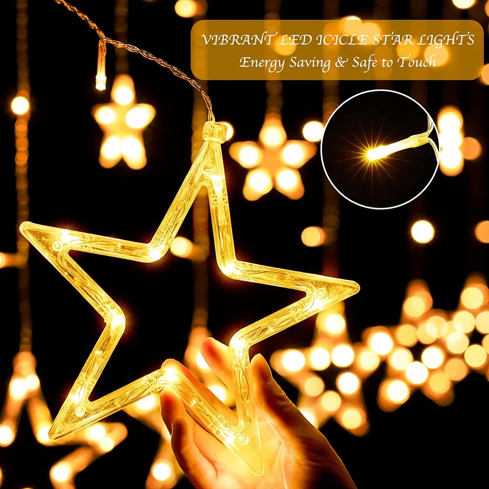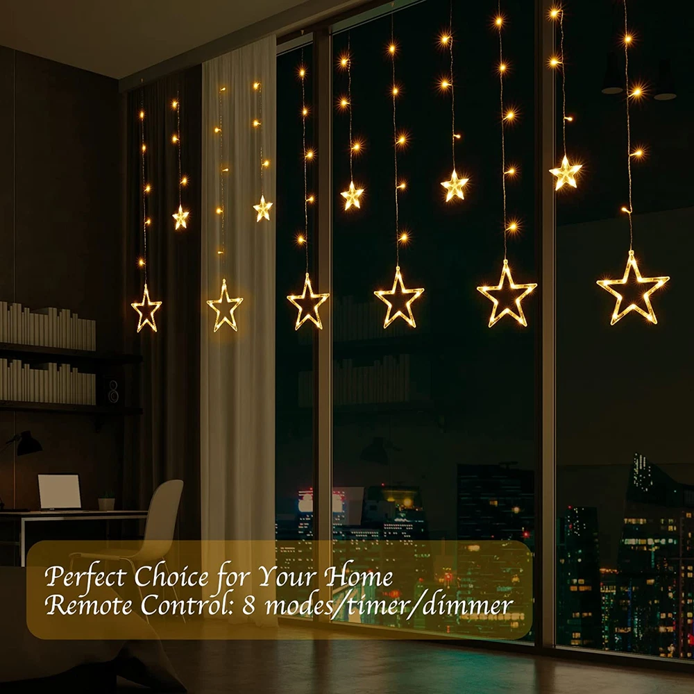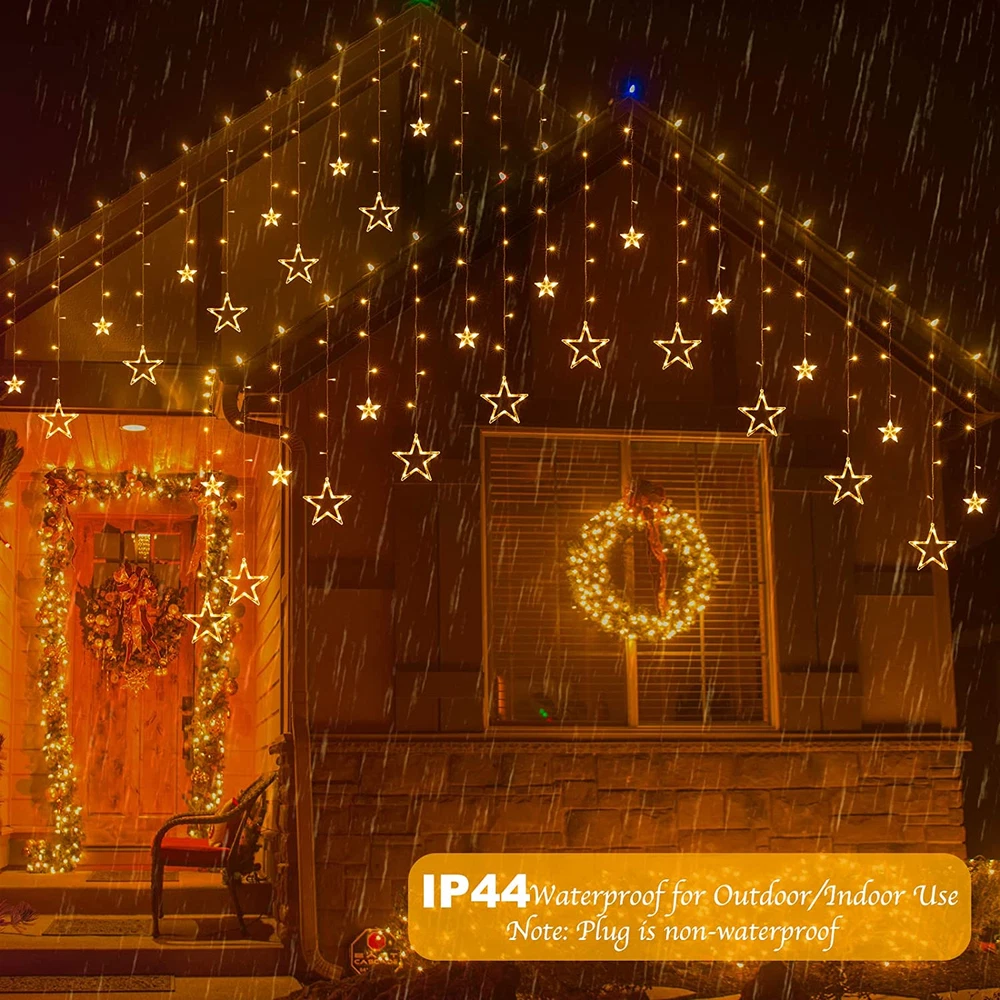 Indoor/Outdoor Usage: Indoor Included Components: 1 x Remote Control, 1 × 9 ft Plug-in Star Curtain Lights with 12 Style: Star - Warm White Special Feature: function(f) {var _np=(window.P._namespace("DetailPageProductOverv Theme: Christmas Brand: Does not apply Item model number: 1 Control Method: Remote Power Source: Corded Electric Product Dimensions: 98.4 x 34.8 x 0.01 inches; 1.01 Pounds Water Resistance Level: Waterproof Additional Features: IP44 Waterproof, Brightness Dimmable, Extendable to 5 Sets, Remot Voltage: 120 Volts Number of Light Sources: 12 Indoor Outdoor Usage: Indoor Item Dimensions: 98.4 x 34.8 x 0.01 inches Light Color: Warm White Number of Items: 1 Occasion Type: Christmas gtin13: 744110624625 UPC: 744110624625 Style Name: Star - Warm White Color: Warm White Occasion: Christmas Type: Does not apply Light Source Type: LED Controller Type: Remote Control Style Number: 1 Is Discontinued By Manufacturer: No