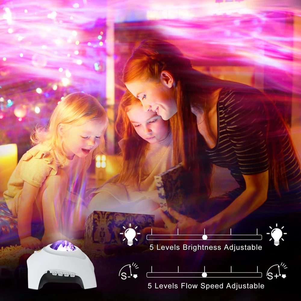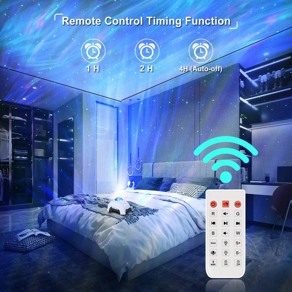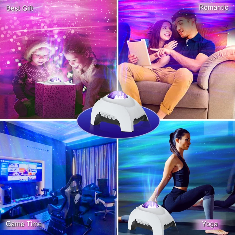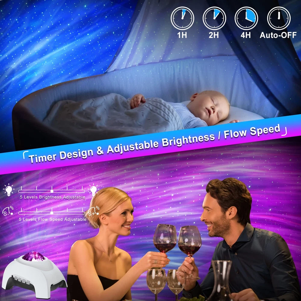 【Upgraded 3 in 1 Star Projector Night Light】 Star Projector for bedroom has been upgraded to 3 in 1 version of star projector, Bluetooth speaker and white noise machine. Equipped with upgraded projection lens, the projection area can reach 300-950ft². With 29 different northern lights effects, you can customize the light effect, brightness, speed and soothing atmosphere. Imagine that your living room is flowing with colorful northern lights as if in nebulae, mysterious and shocking. 【Superior Sound Quality & Flash With Music Beat】 This music aurora projector lamp for bedroom has a built-in Bluetooth 5.0 speaker which delivers stereo sound with crisp highs, accurate mids, and deep bass, and brings you an unprecedented listening experience. When connecting to Bluetooth, turn on the "Sound Activation Mode", the projector's light will flick with the music melody, the little stars and nebulae move rhythmically with the beat of music, creating a fun and vibrant party atmosphere. 【White Noise Sounds & Suitable for All】 LED galaxy star projector is pre-installed with 8 different white noise sounds, soothing sounds seem to take you to nature. White noise is a very effective sound therapy, with functions such as preventing babies from crying and also be used as a relaxation tool for insomnia. It's suitable for infants, kids, adults, elderly and etc, helps you fall asleep more easily. 【Portable Remote Control & Adjust as Your Needs】 The star Night light projector for kids has a remote control. With it, you can freely turn ON/OFF the northern lights and starry sky, change the color of the aurora, light mode, brightness, speed, music and volume. The star projector also has a built-in auto-off timer, you can set it to turn off after 1 or 2 hours. If forget to set the timer, it will automatically turn off after 4 hours. If want to continue using it, you can open it again. 【Ideal Room Decor & Perfect Gift Ideas】 Can't think of what to buy for a birthday, Christmas? galaxy star light projector is very suitable for you to decorate bedroom, game room, kids room, home theater, window, show, Christmas decorations, party decorations, weddings, birthdays and anniversaries. How to contact us? Login your amazon account > choose "Your orders" > find the order ID > click "Contact seller".