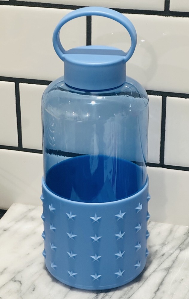 The "Star Studded Water Bottle" is a 32 fl oz acrylic water bottle featuring a push cap for easy access. With a blue color scheme and star-themed design, this reusable bottle is ideal for school or work. The bottle is branded by Star and comes as a set with just the bottle included. It is a classic model, perfect for staying hydrated on the go. Personalization is not available for this product.