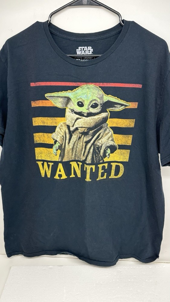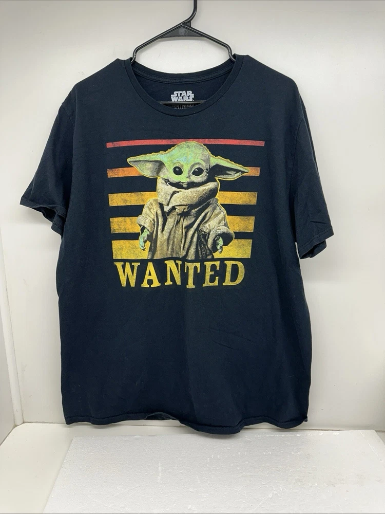 This Star Wars Baby Yoda Wanted T-Shirt is a must-have for any fan of the popular TV show. The black tee features a bold graphic of Yoda, the wise and powerful Jedi Master, with the words "Wanted" and "Baby Yoda" in bold letters. The shirt is made of high-quality material and is easy to care for, making it a great addition to any wardrobe. The shirt is available in size XL, with a regular fit and short sleeves. It is machine washable, ensuring that it will stay looking great for years to come. The Star Wars Yoda theme is perfect for any fan of the franchise, and the logo accents add a touch of style to the shirt. Get yours today and show off your love for Baby Yoda!