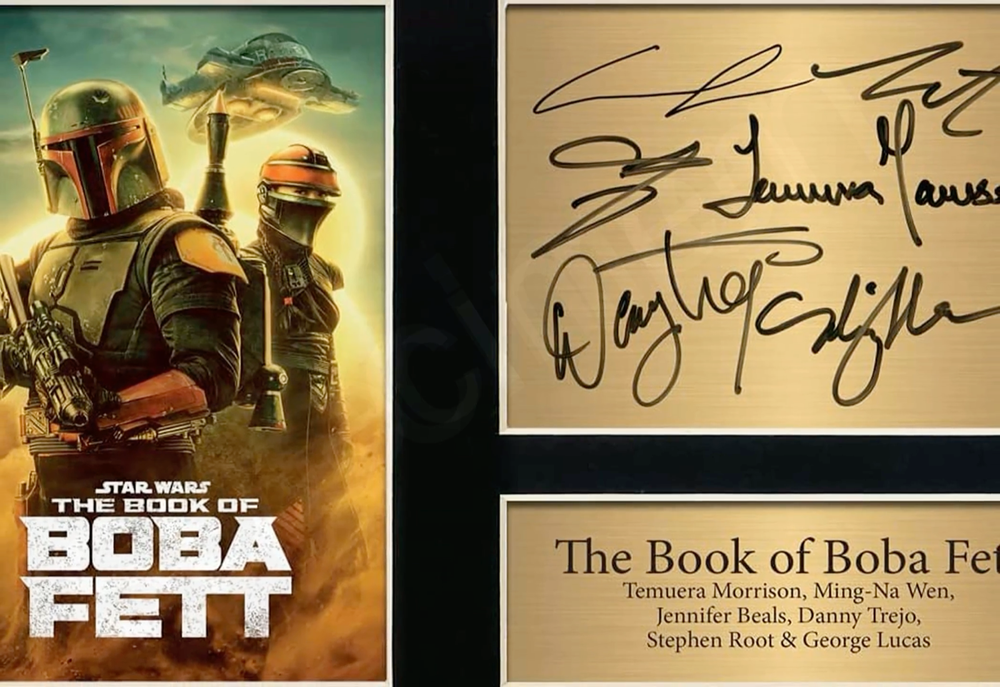 Star Wars The Book of Boba Fett Signed Autograph Limited Edition Memorabilia Print. Perfect for fans of Star Wars and Sci-Fi Movie fans! Signatures include: Temuera Morrison, Ming-Na Wen, Jennifer Beals, Danny Trejo, Stephen Root & George Lucas Your Professional Signature Print will come either Frameless, in a polymer frame or premium wooden frame. Buy it for yourself or it can be a wonderful gift for someone. A high-quality Memorabilia print of your favourite celebrity Professional Signed Reproduction Print Printed on 210 GSM Glossy Photo Paper A Great Way to Obtain an Affordable Copy of your Stars Autographed Picture Will Make a Great Gift or For Yourself, It Looks Stunning Framed in the Home or Office Please Note that these Autographs are Reproduction Prints and not Originals There might be small image defects / blurry images please check the images carefully before you buy Go on, treat yourself or send it as a gift You can send this DIRECTLY to the recipient as it includes a personalised message that states who it is from, and you don’t have to worry about it getting DAMAGED and arriving broken I will make sure its ULTRA secure for transport to anywhere in the world. – THE ABOVE ONLY APPLIES IF YOU MARK IT AS A GIFT At checkout, you can add the name of the person, which will be added inside Please note, I do not send receipts/invoice-type paperwork with your order as most orders are gifts. If you are treating someone else, please update the shipping address at checkout so the intended recipient’s address comes through to me. FRAME SPECIFICATIONS: *Includes Perspex (I take extra care when packaging to protect your framed print ) PACKING SPECIFICATIONS: *A4 Frameless - will be sent in either a flat A4 Hard Back envelope or A4 Size Postal Tube *A3 Frameless - will be sent in either a flat A3 Hard Back envelope or A3 Size Postal Tube *A4 Framed - will be sent in a postal box *A3 Framed - will be sent in a postal box *Tracking is provided on all our orders we use Yodel If you have any questions don’t hesitate to contact me