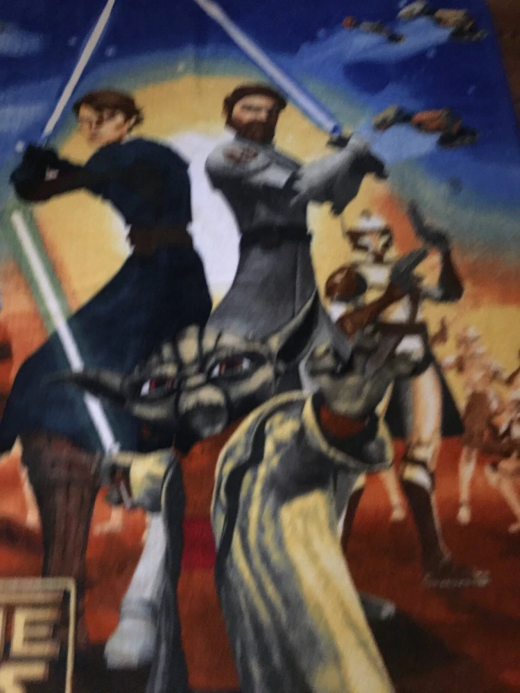 Star Wars Clone Wars Microfleece Blanket Throw 52" x 61" Anakin Skywalker Blanket is preowned but in great condition, no stains or tears and is still not washed out. Feel free to ask any questions about this item, all of our items come from a smoke free environment.