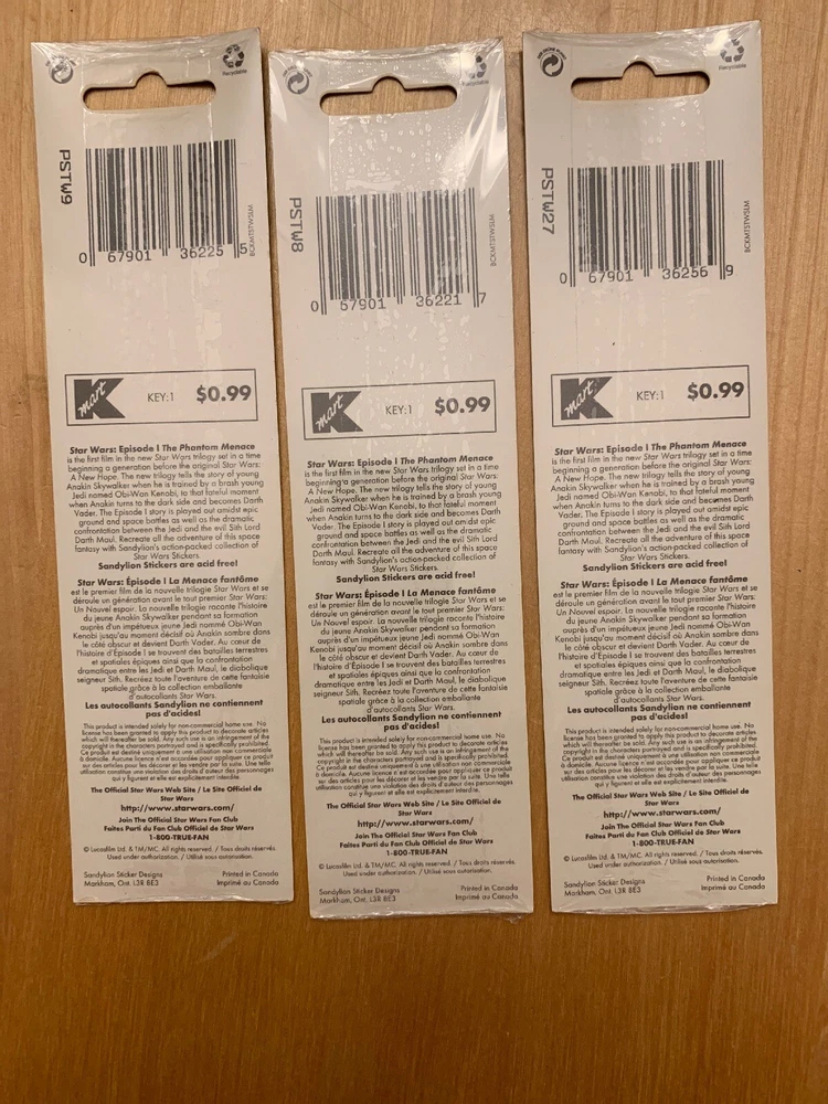 For auction today is a lot of 3 sticker packs from Star Wars Episode I in sealed new condition. I will ship within 1 business day of receiving payment. Please see my other items as I love to combine shipping. From my smoke free home.