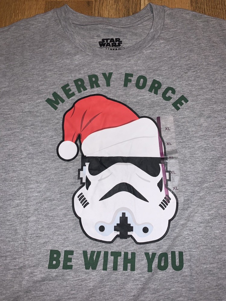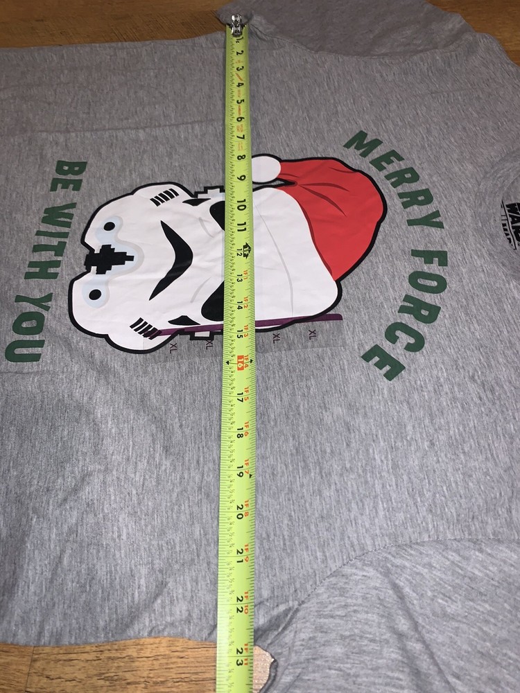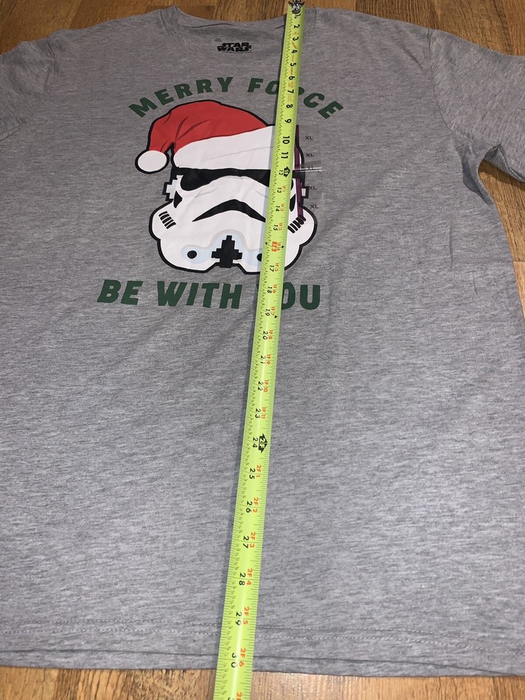 Star Wars Merry Force Be With You Men's T-shirt Gray Christmas Santa Hat Size XL. Measurements in Pictures Shoulder to Hem: 30 inches Armpit to Armpit: 22.5 inches