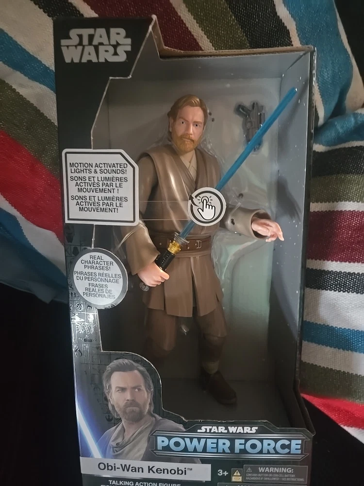 Franchise:Star WarsFeatured Person/Artist:Ewan McGregor, George LucasUPC:461013182419Series:KenobiOriginal/Licensed Reproduction:OriginalAnimation Studio:DisneyTime Period Manufactured:2020-NowItems Included:Lightsaber, BlasterTV Show:KenobiTheme:TV, Movie & Video GamesBrand:DisneyPersonalize:NoFeatures:Battery Powered, Boxed, Talking, With SoundType:Action FigureVintage:NoModel:Star Wars Power Force Obi-Wan Kenobi Talking Action FigureCharacter:Obi-Wan KenobiColor:Multicolorgtin13:461013182419Material:PlasticSigned:NoCountry/Region of Manufacture:China