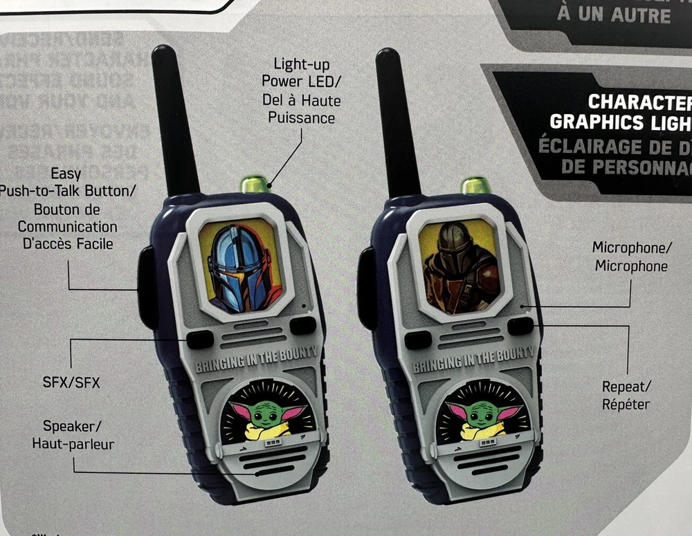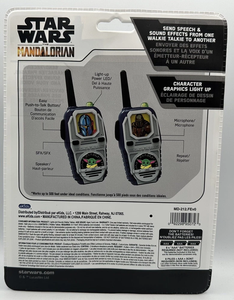 Get ready to embark on an exciting journey through the Star Wars universe with these Ekids Star Wars The Mandalorian Walkie Talkies. These collectibles are perfect for any fan of the science fiction and horror genre, and feature the iconic character The Mandalorian from the fourth Star Wars movie. With lights and sounds, these walkie talkies are sure to provide hours of entertainment and imaginative play. Whether you're attending a Star Wars Celebration convention or just want to add to your collection of Star Wars collectibles, these Ekids walkie talkies are a must-have. Don't miss out on the opportunity to own a piece of the Star Wars franchise and bring the adventure to life.