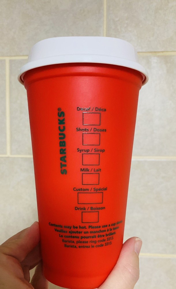 This Starbucks reusable cup is the perfect addition to your collection! Featuring a vibrant red color and festive holiday design, this 16 oz cup is perfect for your coffee or tea fix. Made in 2013, this original piece is a must-have for any coffee or tea lover. The cup is part of a set of two and is perfect for on-the-go use. The Starbucks brand is known for its quality and this cup is no exception. Add it to your collection or use it every day, the choice is yours.