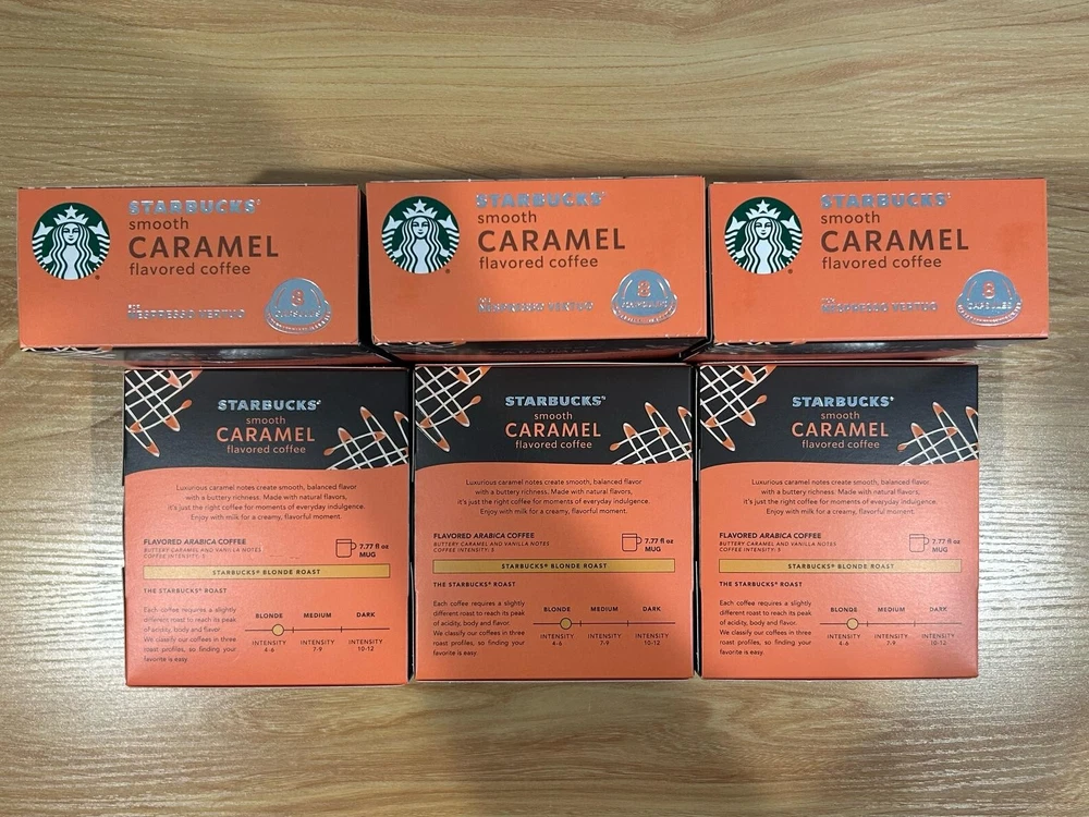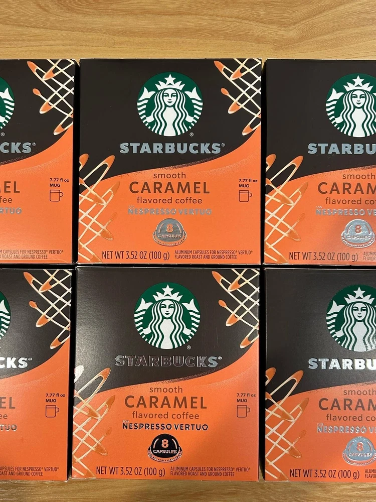 Starbucks Smooth Caramel Flavored Coffee Nespresso Vertuo 48 Capsules 3.52 oz is a premium coffee pod specifically designed for use with Nespresso machines. With a rich caramel flavor, these gluten-free capsules offer a convenient and delicious option for coffee lovers looking to enjoy a high-quality brew at home. The product has an expiration date of 06/15/2025, ensuring freshness and quality for a long time. Perfect for those who appreciate a smooth and creamy coffee experience.