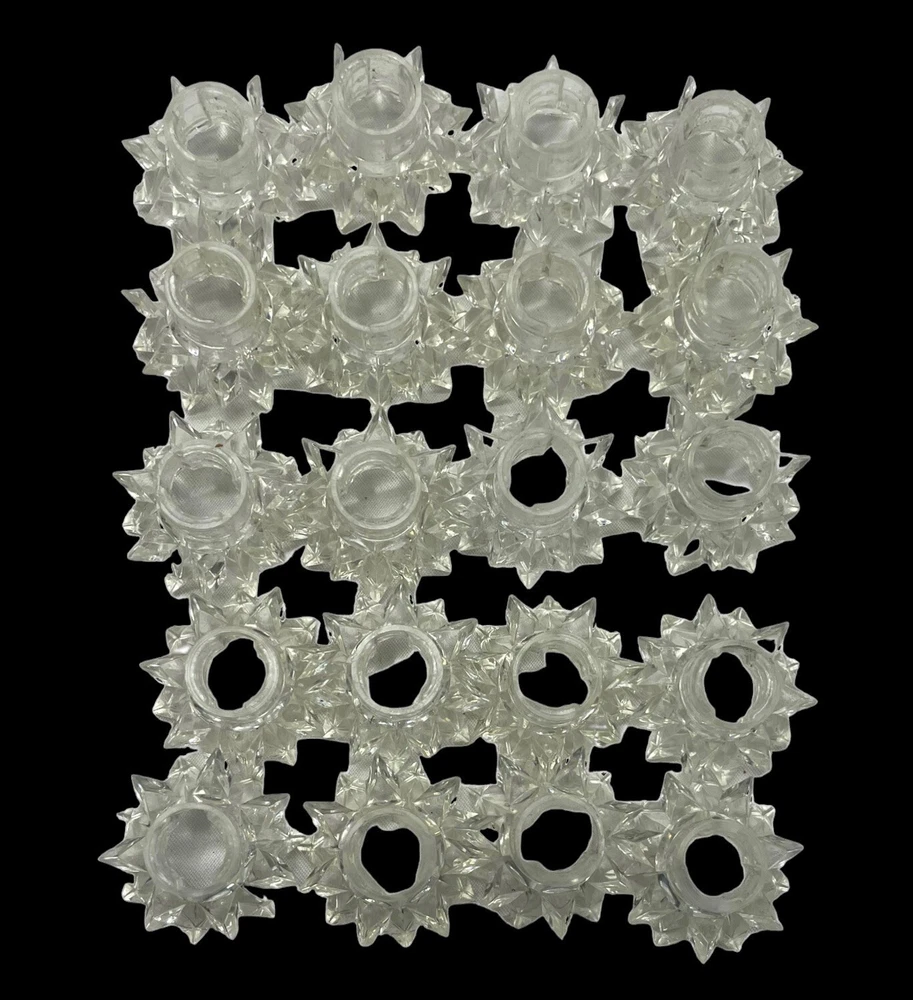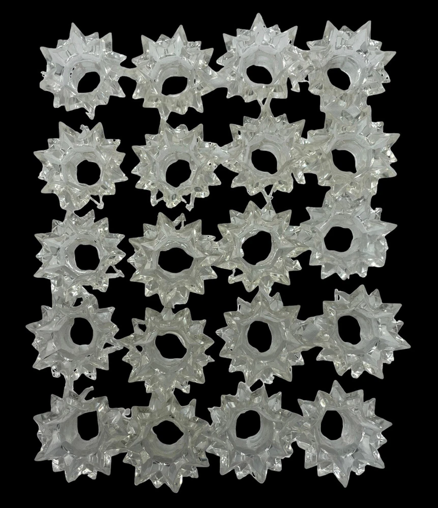 Preowned starburst light cover reflectors for GE Super Spheres LED lights but can be used on other mini-lights. Feel and look like glass or lucite, but I believe are just clear, hard plastic. There are 20 covers in the package. No lights included, as stated in several places - these are replacement covers ONLY. Buyers are responsible for viewing all photos and asking any questions before purchase. I offer multiple shipping options, so please choose your preferred method from the drop down menu on the shipping tab. Returns If you are unhappy with your item, please feel free to return your purchase. Your account will be credited once the return is received. Please note: item must be returned in exact same condition it was received (i.e. tags still attached, factory sealed, no alterations, etc).