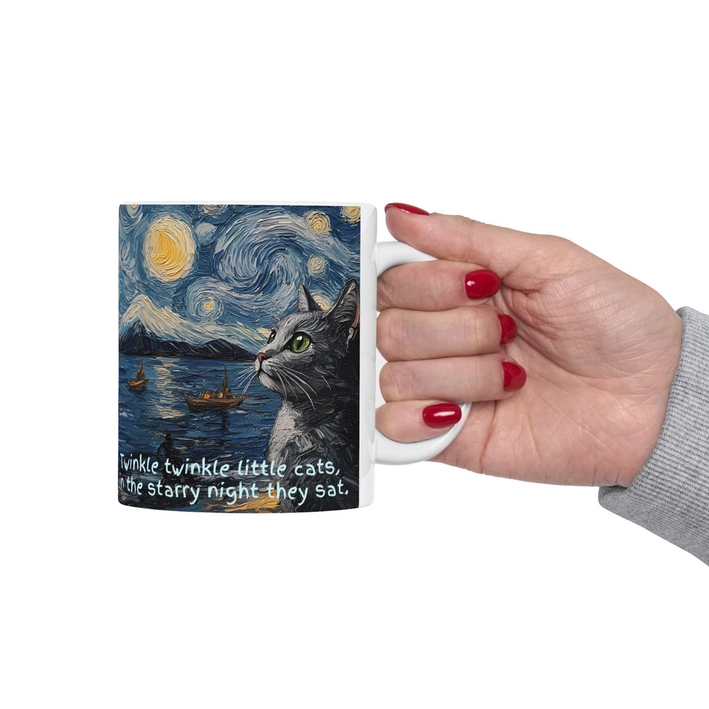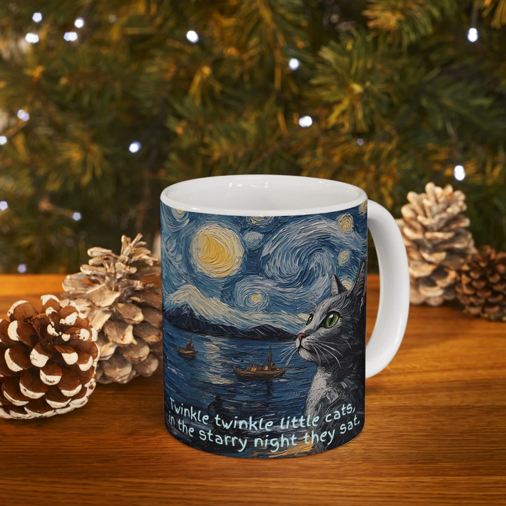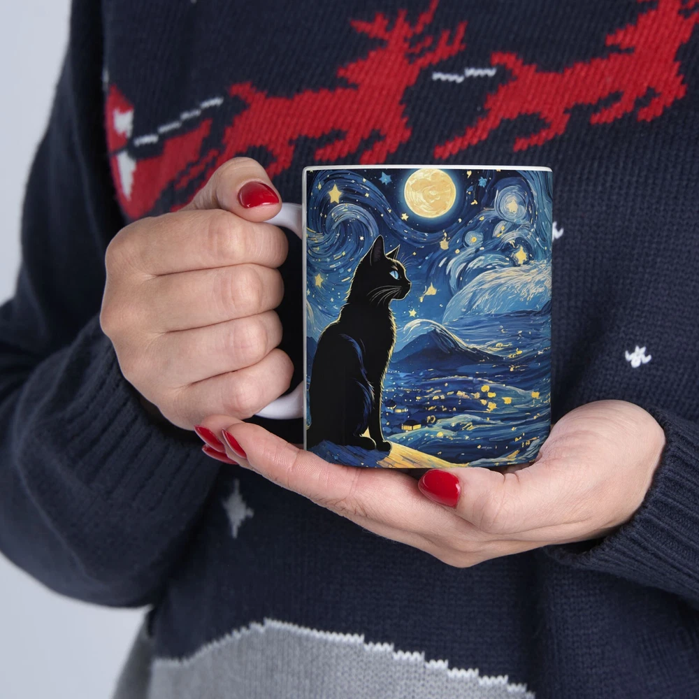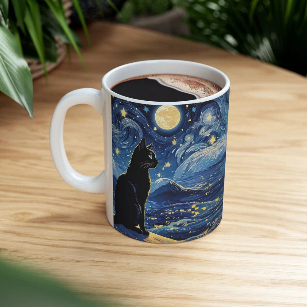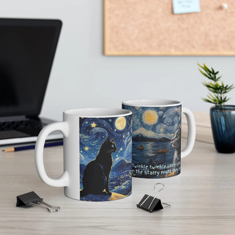 Starry Night Cats Accent Mug - Enjoy a lovely and relaxing sight of two cats against the Starry Night design. Enjoy the relaxing vibe of "Twinkle twinkle little cats, in the Starry Night they sat!" Perfect for cat lovers and art enthusiasts providing a magical experience with every use. Great for gifting during birthdays, holidays, or special occasions. Warm-up with a nice cuppa out of this customized ceramic coffee mug. It’s BPA and Lead-free, microwave & dishwasher-safe, and made of white, durable ceramic. Thanks to the advanced printing tech, the designs come to life with incredibly vivid colors – the perfect gift for coffee, tea, and chocolate lovers. .: These mugs are made with durable white ceramic so that your prints can stand out. .: Available in one size: 11oz .: All mugs feature a comfortable C-handle and a shiny finish so that they're both easy to use and great to look at. .: Drink confidently on a daily basis as all mugs are lead and BPA-free. Product features - Microwave-safe - Dishwasher-safe - White ceramic - 11oz capacity - Lead and BPA-free .: White ceramic .: Rounded corners .: C-Handle Care instructions Clean in dishwasher or wash by hand with warm water and dish soap. Size: Height, in 3.74" Diameter, in 3.15" Shipping during the Holidays may have longer handling and shipping times. Please contact me through Ebay if you experience any issues with your order. Thank you for your interest in my listing! Let me know if you have any questions!