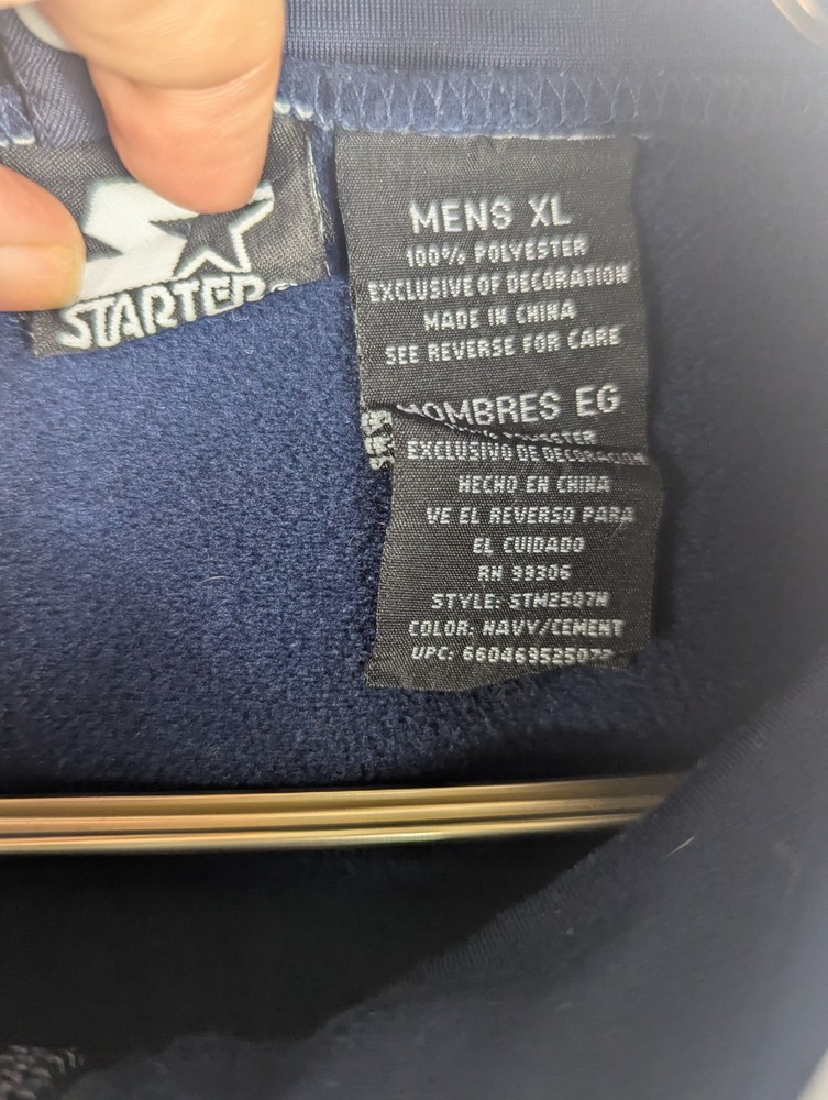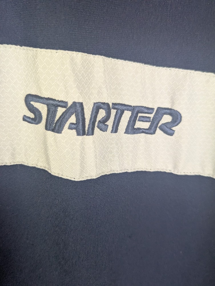 The Starter Men's Windbreaker Jacket in size XL is a practical and stylish choice for the winter and spring seasons. The navy blue jacket features a polyester outer shell with a warm fleece lining, making it perfect for casual occasions. With a zip closure, logo accents, and machine washable care instructions, this jacket combines comfort and practicality for everyday wear. Ideal for walking and other activities, this jacket from the reputable brand Starter is a reliable and fashionable addition to any man's wardrobe.