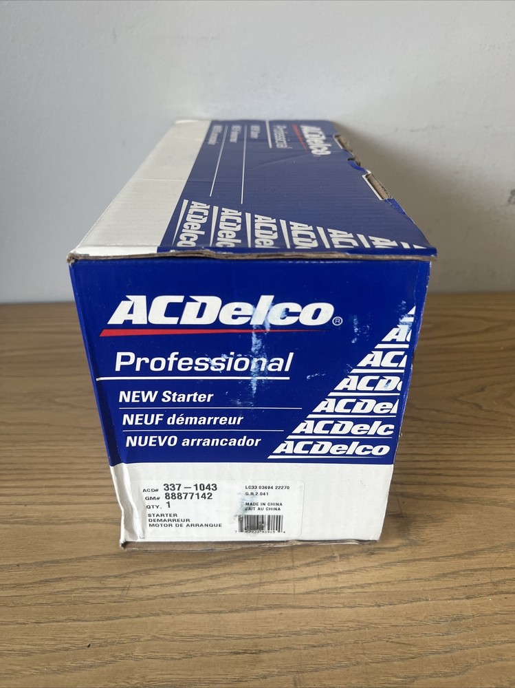 Notes:Feature--NEW units are manufactured under the guidelines of ISO Quality Standards to ensure consistent quality, Package Length--12.7 in, Package Weight--8.24 Lbs, Feature--Engineering enhancements to internal components provide the latest, most efficient unit for your vehicle, Feature--Computer tested for solenoid contact life, coil balance, and pull strength, and the drive gears/clutches are assembled under tight specifications for even greater peace of mind, Package Height--5.8 in, Feature--Key Components Are Greased to Ensure Long Term Reliability in Harsh Conditions, Feature--All Components Are 100% New to Provide Improved Performance, Description--Starter Motor, Feature--All dimensions, key mounting surfaces, and contact points are gauged and measured to ensure proper fit, Package Width--7.2 inmpn:337-1043Sub Type:Starter MotorBrand:ACDelcoPart Type:Starter and Related ComponentsManufacturer Part Number:337-1043