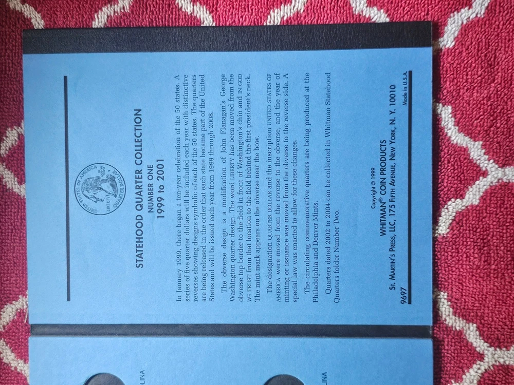 Statehood Quarters 1999-2001 Number One Whitman No. 9697