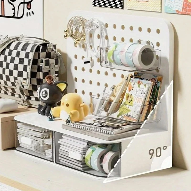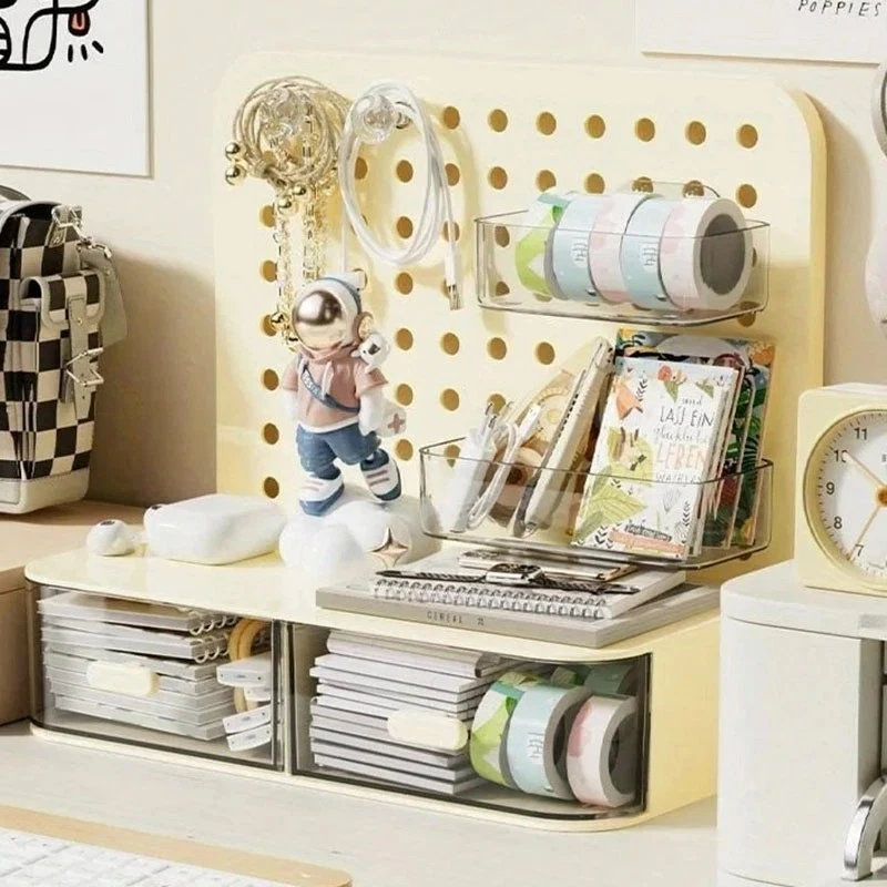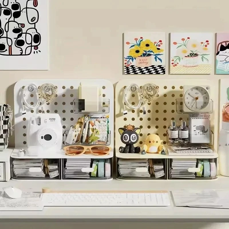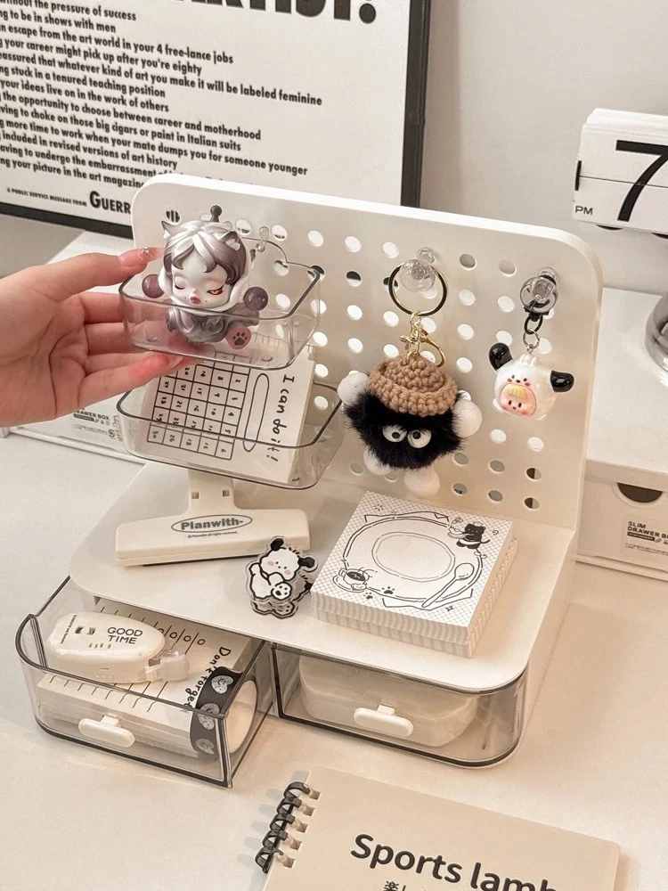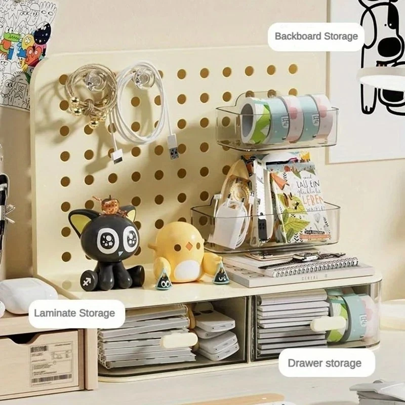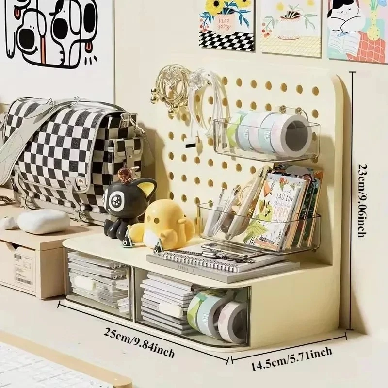 ATTENTION !!! No Extra Fees for US Buyers. Import charges are already included on the price. Stationery Boxes Plastic Storage Board with Drawer Desktop Makeup Organizer Rack Keep your workspace neat and organized with this stylish desktop perforated storage board. Designed with multiple compartments and a drawer, it provides an efficient solution for sorting stationery, pens, makeup, and sundries. The perforated design ensures easy access to your items while maximizing vertical space on your desk. Whether you’re organizing office supplies or storing makeup and small accessories, this versatile organizer helps declutter your desk while adding a modern touch to your space. Compact yet spacious, it’s perfect for both home and office use. Feature: Eco-Friendly:With a 105℃ specification, it ensures safe, eco-conscious storage. Ample Storage: Features a drawer and perforated board design for extensive stationery storage. Material Quality:Crafted from durable plastic, this stationery organizer withstands daily use. Versatile Use:Not just for stationery, it's a versatile makeup storage organizer as well. Space-Saving Design:Compact and perforated, it maximizes desk space without clutter. Specification: Item: Storage Holders & Racks Type: Non-folding Rack Material: Plastic Size: 25x14.5x23cm 24.7x13.5x23cm Color: Transparent Feature: With Drawer Use: Makeup Storage Organizer, Stationery Storage Boxes Pen Sundries Sorting Storage Rack Package Included: 1 x Pc Storage Holders