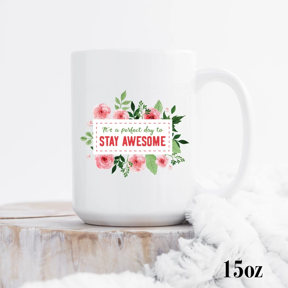 Stay Awesome Mug Motivational Mug Inspirational Gift Good Vibes Mug Positivity Product Details.. This high quality 11oz. ceramic white mug has a premium hard coat that provides crisp and vibrant color reproduction sure to last for years. Perfect for all hot & cold beverages. The highest quality printing possible is used. It will never fade no matter how many times you wash it. Material: 100% Ceramic. Print both sides. Dishwasher and Microwave Safe. High Gloss + Premium White Finish. Printed in the U.S.A. Personalized & Custom. We support personalized and custom mug to add custom, when placing an order, you can add notes to the "order note" in shipping address section. Also you can contact us directly via message. Shipping Info. Ready to ship in 1 to 2 business days, All products are made-to-order and proudly printed in the United States. Shipped by USPS and DHL, You will receive your order in 5-7 days. Replace & Refund. All products are defective during shipping broken, chipped will be replaced free of charge. You are not satisfied with the product, we will refund 100% money to you. If any other issues arise, please do not hesitate to message, we would be more than happy to assist you.