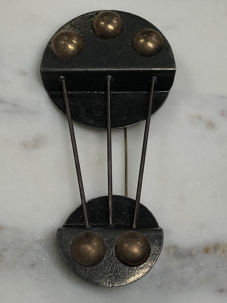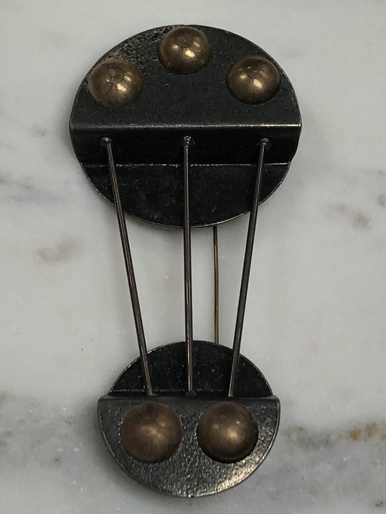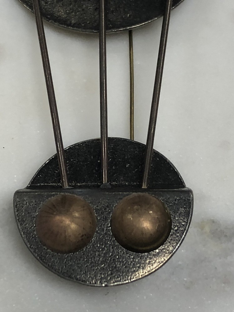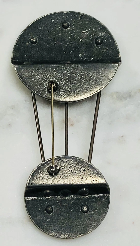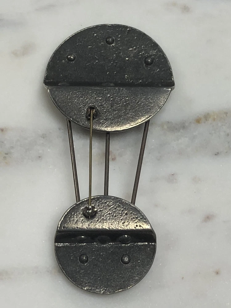 This whimsical brooch is a vintage piece of mixed metals with an abstract design that gives off a steampunk industrial feel. The handmade brooch features a combination of brass and pewter, and is made with a variety of materials that add to its vintage charm. The colors are multicolor and the country of origin is unknown. It measures about 4-3/8 inches by 2 inch inches. This brooch is perfect for those who love fashion and are looking for a statement piece to add to their collection. It's a vintage item that is in great condition and has a lot of character. Whether you're a fan of steampunk or just love the industrial look, this brooch is sure to be a conversation starter. Your purchase will be carefully packed to to insure prompt safe delivery. We are happy to combine purchases to save you on shipping costs. If you purchase multiple items please wait for a combined invoice before paying. Feel free to ask any questions.