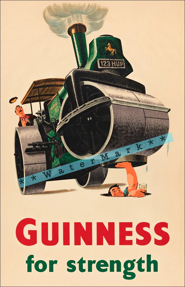 For Strength Guinness Steamroller Beer Advertising Vintage Poster Print Retro Style Restored Art ***We offer Free US Postage or Reduced Postage for Canada & Worldwide. **No charges for additional prints worldwide. ***These are not framed or stretched or mounted NOTE:**Delivery dates shown are only "Suggested" Order Early To Avoid Post Delay Dramas **Read Please: The print looks best with a nice mat (passe - partout or passepartout ) and frame. These prints are the exact proportion as the original and will not be stretched to fit the paper or canvas...this would cause a distorted print The image will be the exact aspect ratio as per the original poster, so there might be more white on the top and bottom, or side to side. Options available..use the drop-down menu * Watermark will not be on your image. *Cloth Canvas an artist canvas used also in museums and art galleries *Photo Gloss Paper is a high-quality Professional Photo paper *Matte Photo Paper is a great solution if you do not want a Gloss, this paper is great with colors *Luster Photo Paper this photo paper is neither glossy or matt. Glossy paper has a smooth texture, luster paper is slightly textured. This option is a good choice for something in between Metallic, Photo Gloss and Matte *Metallic Pearlescent Photo Paper is a very high-quality paper with a Pearlescent sheen, a glossy finish, and unique metallic appearance, these prints have extra visual interest and depth. This paper uses a combination of film laminate layers that produce striking, dimensional, lasting images on an ultra-bright background. The effect is sometimes described as "chrome on paper." This is NOT a metal plaque, it is a photo paper This poster print will be shipped in a sturdy container. We will ship usually within 24 business hours of payment, except for weekends or US Holidays If there is a question, please do contact me All is done to send you the best quality poster image. Don't forget to check out the Sales. There is a great Buy 3 Get 1 Free Offer!! Shipped with no extra postage..Worldwide! There are a variety of reasons why the images on your monitors don't match each other. The simplest is that each monitor is different; even monitors with the same model won't have colors that match up perfectly We are located and ship only from the USA The art is not AI generated, these are restored prints from originals
