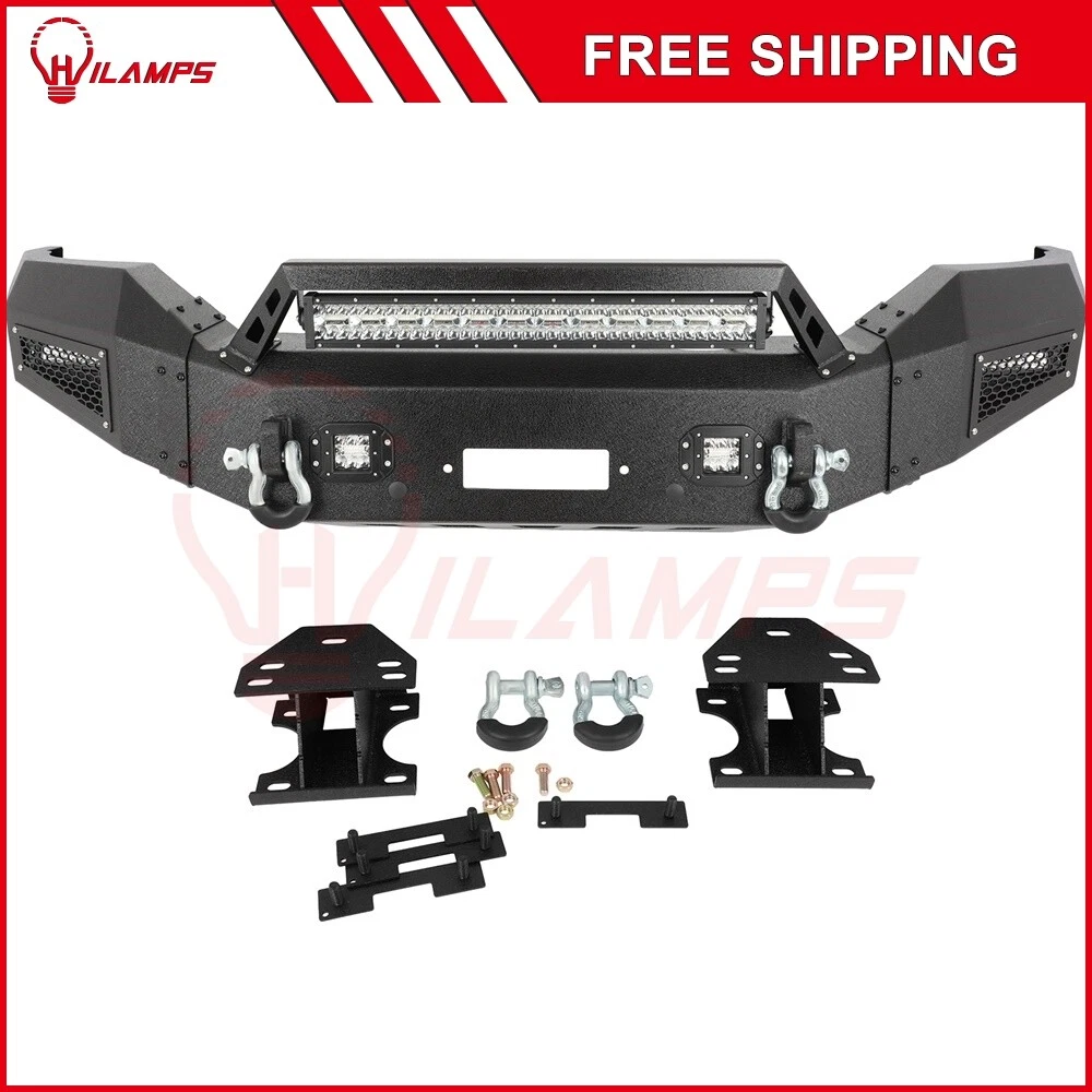 Fitment: Textured Steel Front Bumper Winch For 2016 2017 2018 GMC Sierra 1500 w/LED Light Position: Placement on Vehicle:Front Package Included: 1X front bumper assembly Description: [Heavy-Duty Protection] Bumper is manufactured from heavy duty 5/32" steel sheet and 2"X0. 120" steel tubing to add protection to your precious vehicle while providing it with superior towing capabilities with its heavy-duty D-rings. It also gives your vehicle an attractive upgrade in its appearance for added style. [High Strength D-Ring Mounts] Steel Complete Front Bumper w/Light Bar D-ring Fits 2016-2018 GMC Sierra 1500 Fitment: Textured Steel Front Bumper Winch For 2016 2017 2018 GMC Sierra 1500 w/LED Light Position: Placement on Vehicle:Front Package Included: 1X front bumper assembly Description: [Heavy-Duty Protection] Bumper is manufactured from heavy duty 5/32" steel sheet and 2"X0. 120" steel tubing to add protection to your precious vehicle while providing it with superior towing capabilities with its heavy-duty D-rings. It also gives your vehicle an attractive upgrade in its appearance for added style. [High Strength D-Ring Mounts] The D-Ring mounts are welded both inside and outside for extra strength,Perfect for Off-Road Protection. [Extremely Bright Light] Built-in 1x 144W long light bar,2x 20W strip lights and 2x 18W LED Lights.They brighten up the road, perfect for any night time adventure. [Bolt-on Installation] This bumper is also designed with ease of use and installation in mind. Thanks to its convenient bolt-on solution, this bumper installs quickly and easily without requiring any modification to your vehicle [Easy Installation] Designed to be a direct bolt-on aftermarket bumper using just basic hand tools, so there is no drilling or cutting required for installation. Product will be received exactly the same as shown in the picture! Please feel free to contact us if you have any question! Item Specifics Brand hilapms Manufacturer Part Number 12356104 Manufacturer Warranty 1 Year Other Part Number Fits 2016 2017 2018 GMC Sierra 1500 Placement on Vehicle Front Fitment Type Direct Replacement Material Heavy Duty Steel Color Black Item Weight 148 lbs Finish Powder Coated Custom Bundle No Type Bumper Assembly Modified Item Yes Features Mounting Hardware Included,Scratch-resistant Applicable Regions US Installation Simple Bolt-On, No Drilling Required Interchange Part Number Pickup Truck Winch Bumper Bull Guard Steel Off road Textured Winch Plate Capacity Accepts up to 12,000 lb. winches or smaller. D-Ring Capacity 4.75 ton Instruction Included Yes Winch Plate Included Yes D-rings Included Yes Lights Included Yes Applicable Regions US Installation Simple Bolt-On, No Drilling Required Interchange Part Number Pickup Truck Winch Bumper Bull Guard Steel Off road Textured Winch Plate Capacity Accepts up to 12,000 lb. winches or smaller. D-Ring Capacity 4.75 ton Lights Included Yes D-rings Included Yes Instruction Included Yes Winch Plate Included Yes Payment 1.We only accept PayPal. 2.Please do not use the PayPal note field to indicate us to ship to other address. The note there will NOT be read. If you want to change the shipping address, please contact us by eBay messages. 3.(if you want cancel orders or change address pls contact us within 6 hours after payment,or we are not responsible for shipping a replacement.) 4.Payment must be received within 10 days as auction ended or order might be delayed. Shipping 1. Orders processed within 24 hours of payment verification.(if you want cancel orders or change address pls contact us within 6 hours after payment,or we are not responsible for shipping a replacement.) 2. We only ship to confirmed PAYPAL addresses. Your PAYPAL address must match your Shipping address. 3. The images shown are not the actual item and are for your reference only. 4. Fast shipping:All our packages use USPS First Class/UPS/Fedex... Package Service 5. If you have not received your shipment within 15 days from payment , please contact us. We will track the shipment and get back to you as soon as possible with a reply. Our goal is customer satisfaction! Returns 1. You have 30 days to contact us and 10 days to return it from the date it was received. If this item is in your possession more than 7 days, it is considered used and we will not issue you a refund or replacement. There are NO EXCEPTIONS! 2. All returned items must be in the original packaging and you must provide us with the shipping tracking number, specific reason for the return, and item custom lable. 3. We will refund your full winning bid amount, upon receipt of the item in its original condition and packaging with all components and accessories included, AFTER both Buyer and Seller cancel the transaction from eBay. OR, you may choose to have a replacement. 4. Return shipping is to be paid by the Buyer. Feedback 1. We maintain high standards of excellence (five stars review)and strive for 100% customer satisfaction! FEEDBACK IS VERY IMPORTANT TO US. We request that you contact us immediately BEFORE you give us neutral or negative feedback, so that we can satisfactorily address your concerns. 2. It is impossible to address issues if we do not know about them! Shop Category Store Home Towing Mirrors Sensors Cooling System ◈ Radiator ◈ Cooling Fan ◈ Thermostat Housing ◈ Water Pump ◈ Oil Coolers Air Conditioning System ◈ Condenser ◈ Module & Resistor ◈ Blower Lamps ◈ Brake light ◈ Instrument Light ◈ Headlight Assembly ◈ Side Marker light ◈ Headlight Truck Bed Accessories CV Axle Shaft Alternator Radiator Brake pads Steering Shaft Windshield Wiper Motor Strut Assemblies Door Handle Wheel Hub Bearing Assembly Wheel Adapters Window Switch Bumpers Window Regulator Compressor Window Visor Drive shaft CDI BOX Other Hot Item High Mount LED 3rd Brake Light Lamp For 1994-2001 Dodge Ram 1500/2500/3500 Smoke USD 21.31 For 2014-2018 Chevy Silverado & GMC Sierra 1500 2500 LED 3rd Brake Light Smoke USD 28.