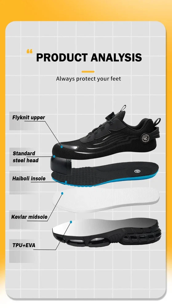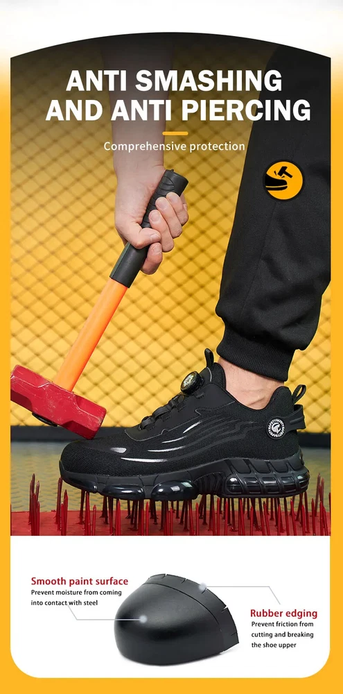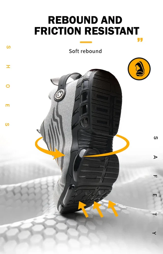 These safety sneakers are a game-changer for tough work environments! The steel toe provides solid protection against heavy impacts, while the Kevlar midsole keeps sharp objects from piercing through. They’re surprisingly lightweight and breathable, so my feet stay cool and comfortable even during long shifts. The non-slip outsole grips surfaces securely, giving me confidence on slippery floors. Perfect for construction or warehouse work—durable, comfy, and reliable!