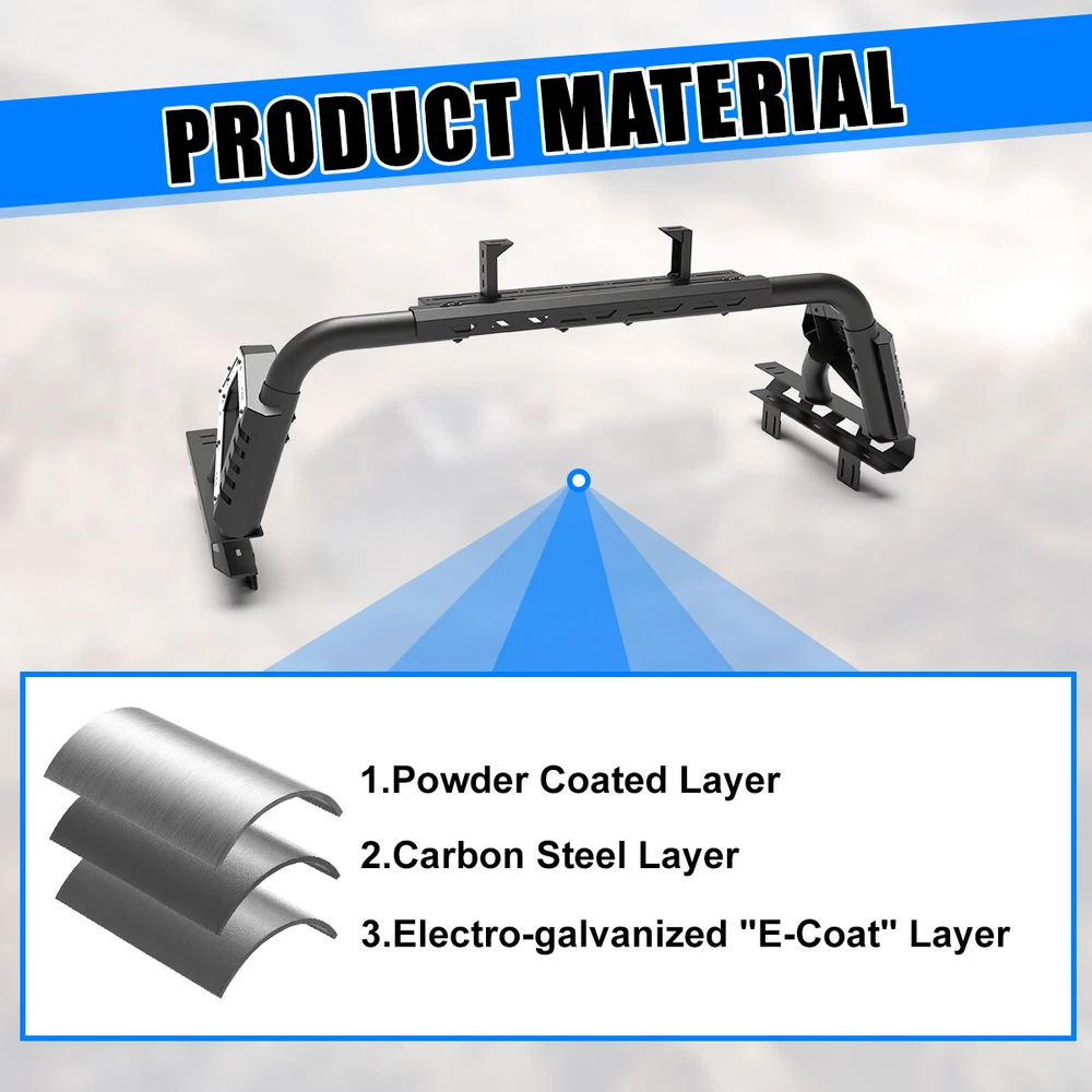 Home Payment Shipping Return Policy About Us Contact Us Feedback Title Other Car Refrigerator Front Bumper Rear Bumper Fender Flares Inner Fenders Side Steps Running Board A-Pillar Light Mount Brackets Headlights For Ford For Dodge For Chevrolet For Toyota For Mitsubishi Taillights For Chevrolet For Toyota For Ford For Jeep For Dodge For Honda For Nissan For Cadillac Fog Lights For Jeep For Dodge For Chrysler For Ford For Toyota For Chevrolet For Nissan For Lexus For GMC For Cadillac For BMW For Mercedes Benz LED Headlights For Ford For Dodge For Chevrolet For Toyota LED Taillights For Toyota For Chevrolet For Ford For Jeep For GMC For Honda For Cadillac LED Fog Lights For Toyota For Ford For Chevrolet For Mercedes Benz Jeep Headlights Tail Lights Fog Lights Refrigerator Bumper Fender Flares Inner Fenders A Pillar Light Mount Brackets Side Step More Chevrolet Headlights Tail Lights Fog Lights Refrigerator Bumper Ford Headlights Tail Lights Fog Lights Refrigerator Bumper Toyota Headlights Tail Lights Fog Lights Refrigerator Bumper Dodge Headlights Tail Lights Fog Lights Refrigerator Bumper GMC Headlights Tail Lights Fog Lights Refrigerator Bumper Similar Type: https://www.ebay.com/itm/405284511827 https://www.ebay.com/itm/405305449637 Product Features: ✴ Compatible with most tri-fold covers mounted on top of the truck bed rails; ✴ Sport bar may limit the opening of the covers. ✴ Silver Decorative Frame: Silver decorative frames can make the roll bar you purchase look more substantial. ✴ LED Light Height Adjustable and Heightening Mounting Bracket: 1. Pod light or Light Bar can be installed. 2. Adjustable position of mounting bracket. 3. Adjustable height range of 4.84-7.6inches. ✴ Mounting Base: 1.Compatible with most retractable, roll-up, and folding bed covers. 2.Bed covers will not be able to fold completely back. 3.Can be secured by punching holes in the bed shoulders or Locked to factory side rails. ✴ Three ways to Install: 1. Bed Rail Mounting Bracket: Locking the base to the factory bed rail. 2. Lock the base to the side rails using the supplied clamping tabs. 3. Holes can be drilled in the rail lip on the side of the truck bed to secure the base. Item Details ✴ Color: Black ✴ Materials: Q235A ✴ Placement on Vehicle: Rear ✴ Installation: Bolt-on, ✴ Attachment Type: Screw-On ✴ Items Included: Mounting Hardware ✴ Surface Finish: Black Powder Coated Steel ✴ Fitment Type: Direct Replacement ✴ Adjustable Width: 62.68~72.52 inches ✴ Adjustable Height : 22.36~27.87 inches ✴ Package Size: 34.65*32.68*11.42 inch ✴ Package Weight: 92.59 lbs Compatibility For 1994-2010 Dodge Ram 1500/2500/3500; For 2011-2025 RAM 1500/2500/3500(Not compatible for models with RamBox) For 1999-2025 Chevy silverado/GMC sierra 1500/2500HD/3500HD For 1997-2025 Ford F-150; For 2017-2025 Ford F-250/350 Super Duty; For 2000-2021 Toyota Tundra; For 2004-2024 Nissan Titan/Titan XD For 1994-2004 Chevrolet S-10/GMC Sonoma; For 2004-2012/2015-2025 Chevy Colorado/GMC Canyon For 1993-2011/2019-2025 Ford Ranger For 2020-2025 Jeep Gladiator ; For 2005-2025 Toyota Tacoma For 2001-2025 Nissan Frontier For 2017-2025 Honda Ridgeline Package Included ✴ 1*Pickup Trucks Universal Adjustable Roll bar Bed Rack ✴ 1*Set of Mounting Accessories Payment Delivery details Terms of sales About us Contact us Payment We accept PayPal, credit card , Apple Pay & Google Pay etc. Delivery details All items will be shipped within 1-3 business days after payment received, we will try our best to ship out as soon as we can, hope for your understanding. Please double confirm your address and contact information, which will help the delivery faster and more accurately. Note :buyers who purchase international products need to pay import tariffs!!! Terms of sales Professional installation is highly recommended. Any problem of the item please feel free to contact us first , please D o Not leave negative feedback before that, or simply return it within 60 Days in original condition. We will resolve it for you ASAP. About us Any questions please do not hesitate to contact us directly by eBay message . We will reply you within 24 hours asap, thanks for your understanding. Contact us Should you have any problem or require any further information please feel free to contact us . If you are satisfied with our product and service, please kindly leave us a positive feedback.