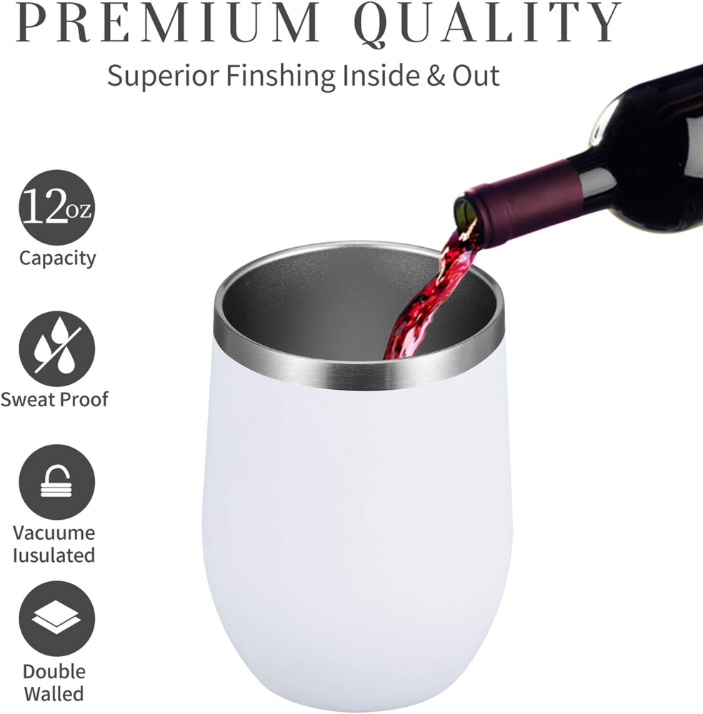 Store New Arrivals Add to Favorite View Feedback Contact Stemless 12 OZ Wine Tumbler Glasses with Lid -Insulated Double Wall Vacuum Stainless Steel Travel Tumbler with Straw,For Woman under 10 Dollars (White,1) Description Style Modern Number of Items 1 Pattern Solid Theme Food,Travel Unit Count 1 Count Material Feature Insulated Product Dimensions 3.2"W x 4.5"H Material Stainless Steel Capacity 12 Fluid Ounces Age Range (Description) Adult Specific Uses For Product Cold Drinks, Hot Drinks Included Components Lid Reusability Reusable Item Weight 4.2 ounces Occasion Picnic Item Weight 120 Grams Special Feature Double Wall Color White Shape stemles Recommended Uses For Product Travel, Home Material Type Free BPA Free Product Care Instructions Machine Wash, Hand Wash Only Size 1 Count (Pack of 1) [Advanced Insulation Technology:]Double wall vacuum insulated prefection in a stemless wine tumbler made from lifelong Stainless Steel! Set off on your refreshing picnic, hiking or camping adventures with your water, wine, or cocktail icy-cold for 10 hours or your coffee and tea scalding-hot for over 8 hours Product Description Lead-free 304 food grade and Double-layer vacuum stainless steel has excellent cold-keeping and heat-keeping effect.Phenol-free cup lid with stainless steel straw and straw brush is also hassle-free in terms of cleanliness and convenience. A Great gift for Christmas Spoil your beloved friends, family members, nature lover, or a BBQ addict to the best 12 OZ stainless wine tumbler gift and make them love you a bit more! Perfect for coffee, wine, tea, cocktails, smoothies, ice coffee, champagne, beer, ice cream and more, this 12 OZ insulated wine tumbler with lid is ready to be offered as a mind-blowing gift! MEWAY 12oz wine tumbler Anywhere & Anytime A lovely stainless steel tumbler that is easy to carry around! Toxin-free Dishwasher-safe without the threat of toxins. Please note that washing in the dishwasher will cause the cup layer to fall off. Stainless Steel Materials Unbreakable premium material. Exterior coating protects against dents and scratches. Safe choice for adults and children. Thirteen Kinds of Color 12 colors for choosing, always one you like. Wonderful Gift Choice We offer tumbler set, which is a good gift choice for your friends, family members and coworkers. Stainless Steel Wine Glasses Comparison Lid Slider Lid Lid Straw hole Lid Lid Slider Lid Shape Slimmer Look Shape Rounder Look Shape Slimmer Look Straw Straight Straw Straw Bent Straw Straw Straight Straw Material 304 Stainless Steel Material 304 Stainless Steel Material 304 Stainless Steel ABOUT US We offer the best prices around on high quality products. Our E-store includes media such as books, movies, music and games while offering electronics, toys, sporting apparel, clothing, tools, general home, garden items and more. SHIPPING We are always working hard to ensure your package arrives as soon as possible. Please understand that some factors like weather, high postal traffic, and the performance of shipping companies are outside of our control. We offer free shipping to the lower 48 states and ship within 2 business days of payment, usually sooner. We do not accept P.O. Boxes. Please provide a physical address. RETURNS We offer a 30-Day Return Policy on items which you are not completely satisfied with. You have the option for a full-refund or an exchange of the item. No returns are available on items shipped outside of the USA. PAYMENT We accept PayPal. CONTACT US This page content is yet to come Please ad us to your favorite seller and visit again later Thank You CUSTOMER SATISFACTION We try our very best to make sure every customer is completely satisfied. If there's a problem, message us! We're happy to help