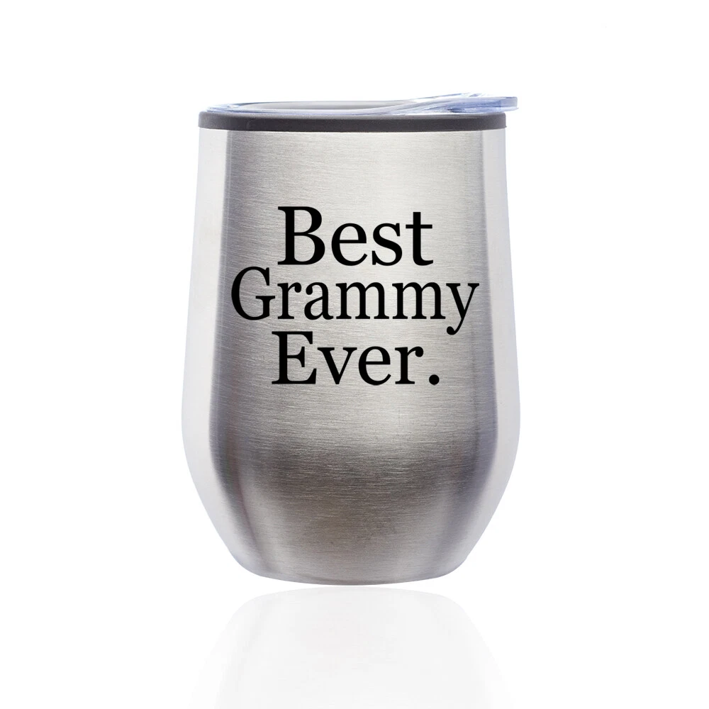12 oz Double Wall Insulated Stainless Steel Tumbler Glass with Lid -Stainless steel shell -Double wall plastic inner insulation -BPA free -Clear plastic lid with drinking hole -Hand wash only -Measures 4.5" H x 3" D