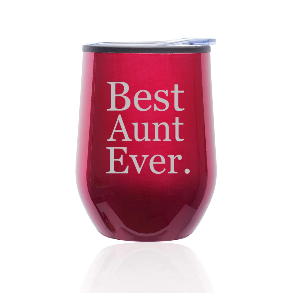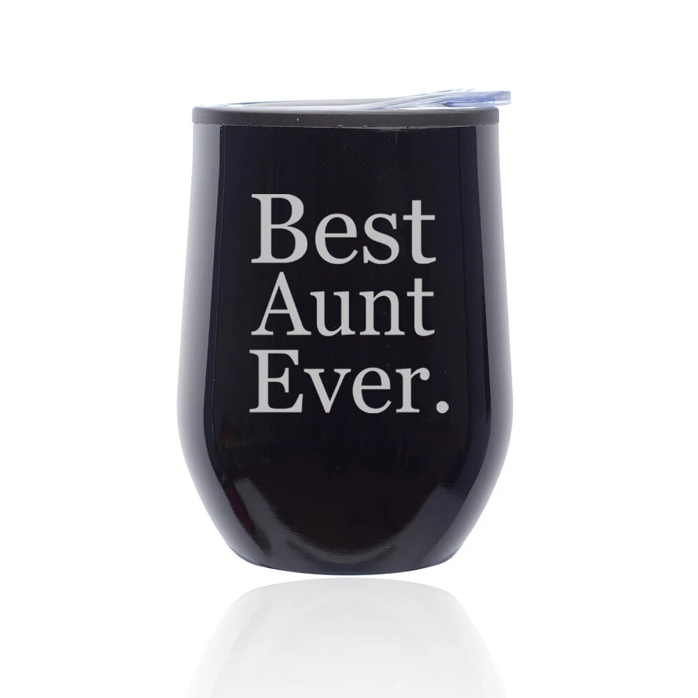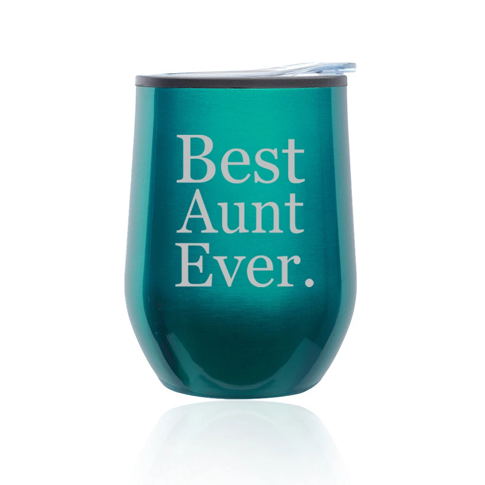 Stemless Wine Tumbler Coffee Travel Mug Glass Cup w/ Lid Best Aunt Ever