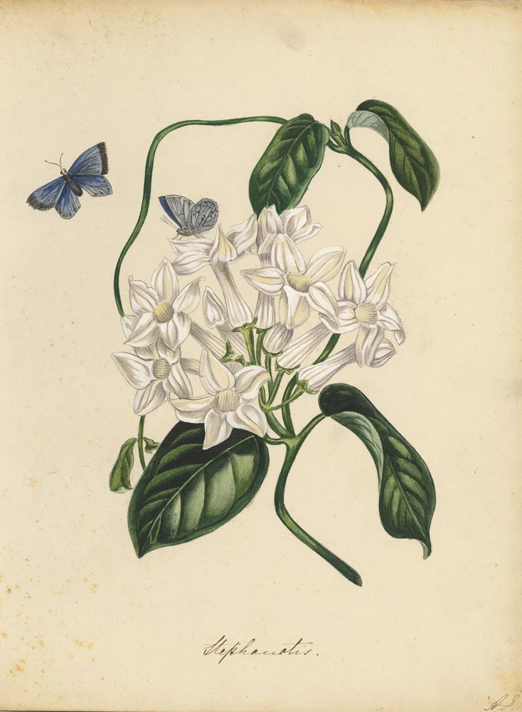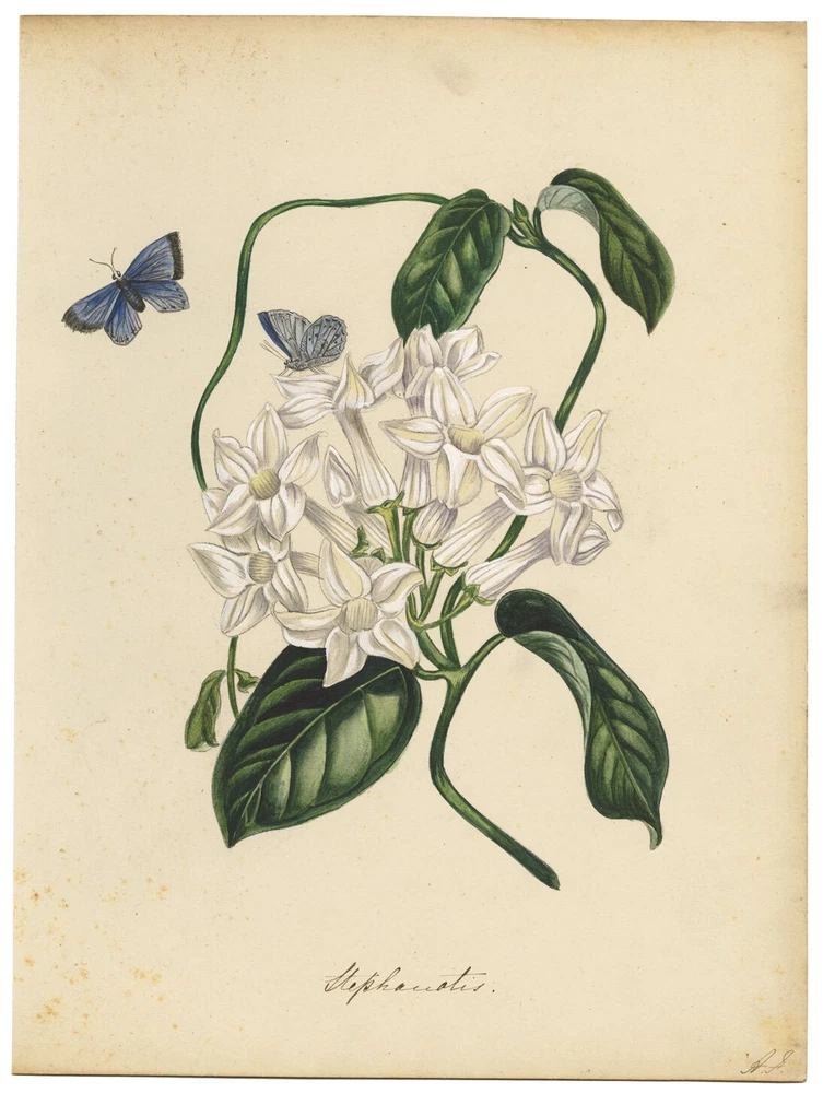 View All Subject Abstract Animals Architectural Botanical Cartoon Children Cityscape | Townscape Decorative Arts Fashion | Costume Floral | Gardens Food | Wine Genre Illustration Landscape Military Music | Instruments Mythical | Fantasy Life Drawing Political Portrait Religious | Inspirational Seascape | Marine Still Life Transport Medium Acrylic Aquatint Chalk Charcoal Engraving Etching Gouache Graphite Linocut Lithograph Mezzotint Mixed Media Oil Pastel Pen & Ink Pith Painting Watercolour Woodblock Woodcut | Wood Engraving Stephanotis (Jasmine) Flower – mid-19th-century watercolour painting An original mid-19th-century watercolour painting, A.F., Stephanotis (Jasmine) Flower. A bold and vibrant original botanical watercolour dating from an era considered the Golden Age of Botany. Hand-drawn in pencil then coloured in watercolour, with the addition of gum arabic to intensify the colour. This painting is one of a collection that we have for sale by two Victorian hands, initialled A.F. and E.F, who were likely to be sisters. The paintings in the collection are copies after botanical plates published at the time, principally from Joseph Paxton's 'Magazine of Botany', published in sixteen volumes from 1834 to 1849. Other examples are from Robert Thompson's 'The Gardener's Assistant' and Louis van Houtte's 'Flore des Serres'. Some are after the noted botanical illustrator Augusta Innes Withers. In graphite with watercolour, bodycolour and gum arabic to intensify the colour. On card. Details Signed: Initialled lower right. Inscribed: Inscribed lower centre. Dated: -- Height (cm): 27.6 Width (cm): 20.3 Height (inches): 10.87 Width (inches): 7.99 Condition: Some age toning as shown, particularly around the periphery of the sheet. The picture may have other minor imperfections such as slight marks, foxing, creasing or pinholes, commensurate with age. Please see photos for detail. Presented: Unframed. Stock Number: JZ-674 All artworks come with a Certificate of Authenticity and—if it is a collection artwork—its accompanying collection text or artist biography. Contact What We Offer Our Listings About Us Delivery Returns Contact We welcome all enquiries. If you have a question about a specific artwork, it is helpful if you can please quote the 'stock number' listed towards the top of the product description (e.g. JG-347), in order to help identify the work. Please see our Business Seller Information below for contact details. Our gallery is exclusively online. Should you wish to view an artwork in person, please contact us to arrange an appointment (Monday to Friday, 9.30am–5.00pm). Please provide the 'stock number' (e.g. JG-347) of the artworks that you are interested in so that we can get them out of storage for you. As all artworks are kept in storage, please note that general browsing is not possible. The Somerset & Wood Guarantee It is our absolute priority that your buying experience at Somerset & Wood is of the highest quality. This extends from the accuracy of our listings and depth of research, to the diligence of our communication, and the care taken with our packing. We believe that these principles are as important for a low priced artwork as an expensive piece; we are committed to offering affordable art with high 'added value' and to keeping our prices as low as possible. Included with your order you will receive: Certificate of Authenticity (COA) Supplying a COA when selling an artwork is a long-established convention. It is all the more pertinent in today’s online marketplace, where as a buyer you commit to purchase without the opportunity to view and scrutinise the work. By providing a COA with every artwork, backed by our knowledge and expertise, we are vouching that a work is of the stated age and authorship. Accompanying Text for all Collection Works or Listed Artists A printed copy of the accompanying collection text is provided with all artworks that form part of a larger collection, or for listed artists an artist biography is included. This provides 'the story behind the artwork', which can be kept for future reference and enhances the value of an individual piece. Please note that on the rare occasions that an artwork is not part of a collection and has no known artist biography, no text will be included. Free Delivery Worldwide We are pleased to offer Free Delivery Worldwide on every order, regardless of value or destination. Quality Packaging We have the expertise in handling and packing required to ensure your artwork is received in the condition in which it left us. We use high quality envelopes, board, card, tubes and boxes, to give the best possible protection in transit. We believe that receiving a beautifully presented parcel in the post is still one of life’s small pleasures, and we take pride in delivering this experience for our customers. No Quibble Returns We understand that when buying online you do not have the opportunity to scrutinise an artwork in person. We therefore offer complete assurance that you can return the artwork if it does not meet with expectation for any reason. Colour We take care to ensure that our descriptions and images are as accurate as possible. It is important to us that the artwork you receive meets your expectations from viewing it on screen. We produce our digital images through a colour managed workflow and colour-check the images on a calibrated screen. Please note that colours can appear slightly different depending on the calibration of the screen on which they are viewed. If there is a significant variation in colour between our image and the actual artwork we will state this in the listing. If you have any questions about colour do contact us and we will be happy to help. Condition Depending on paper type, some degree of ageing is to be expected and is part of the authenticity of the work. We take care to describe the condition of artworks as fully as possible in our descriptions and photographs. We list any sign