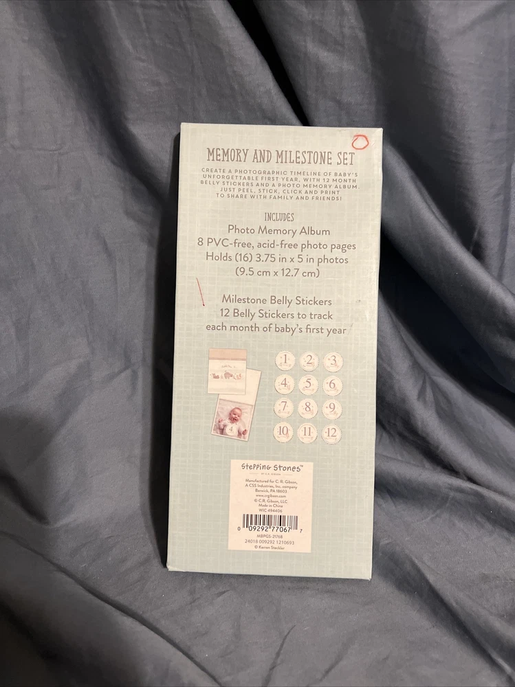 Capture every moment of your baby's first year with Stepping Stones Baby's First Year MEMORY & MILESTONE SET. This set includes an album and stickers that will help you keep track of your little one's growth and milestones. The cream and green color combination is perfect for both boys and girls, while the unisex design makes it a great gift for any expecting parent. Made in China, this keepsake set is ideal for creating lasting memories without worrying about the condition of the item. Whether you're a new parent or a seasoned pro, this set will help you cherish every moment of your baby's first year.