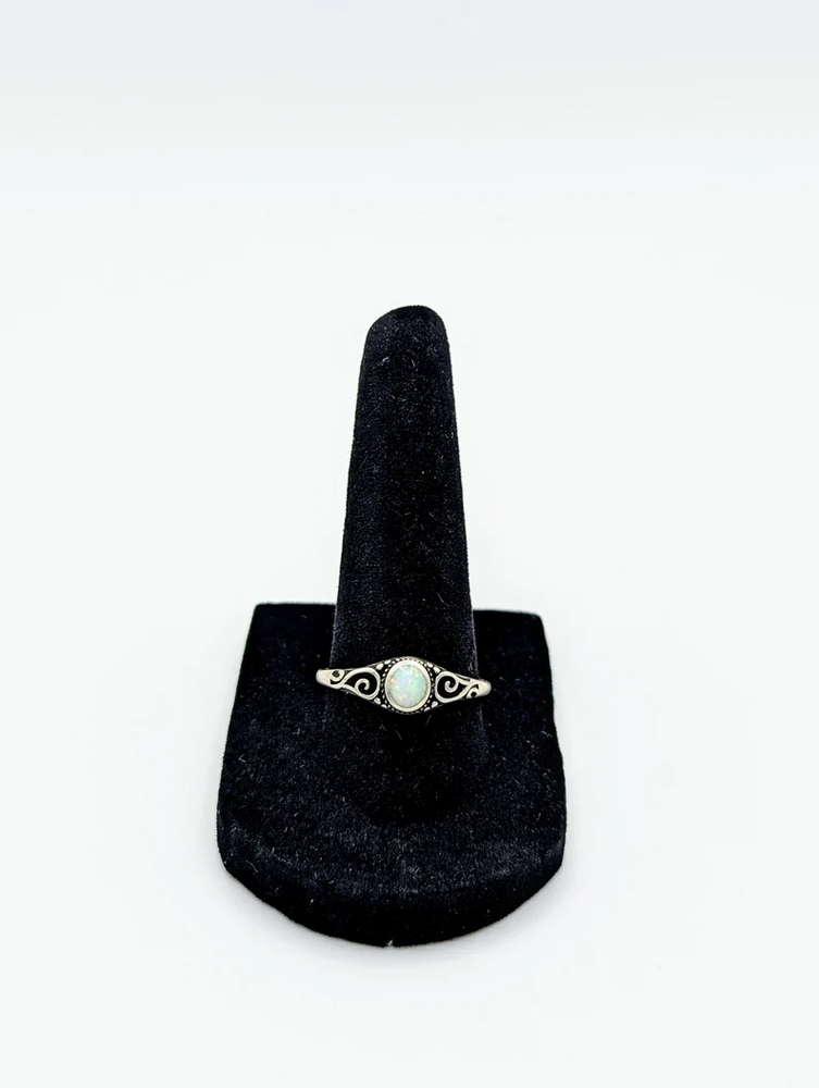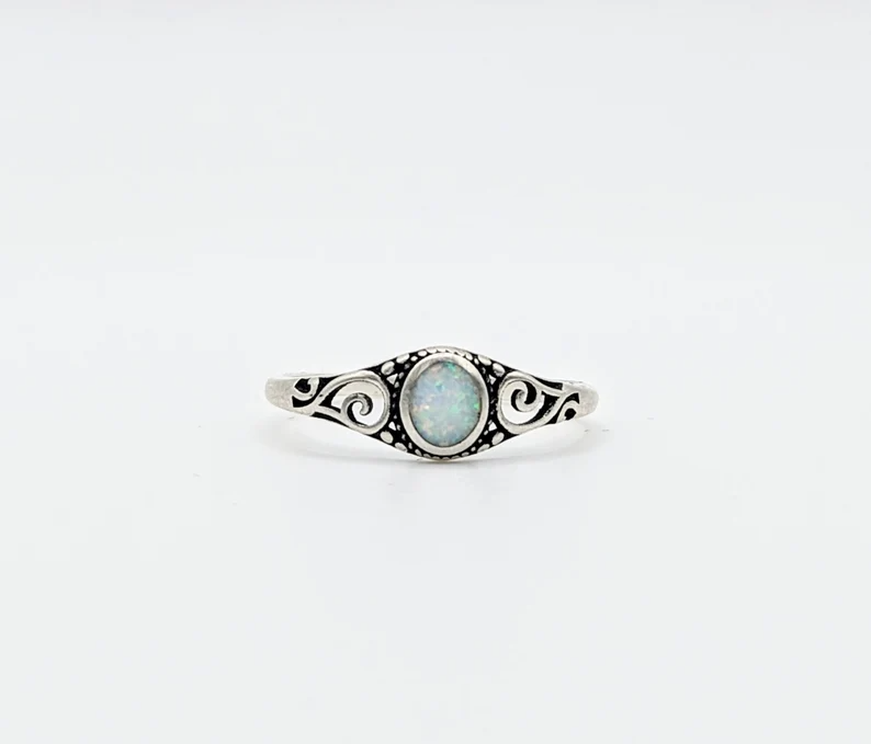 Sterling Silver Opal Ring Size 5 with Elegant Swirl Design
