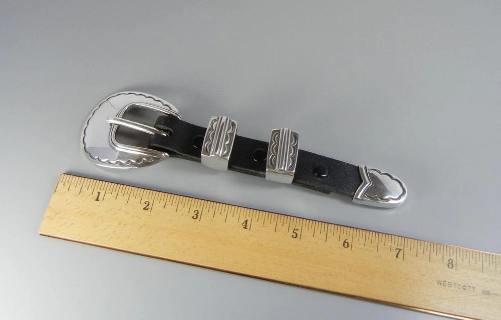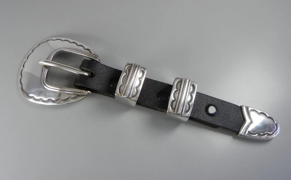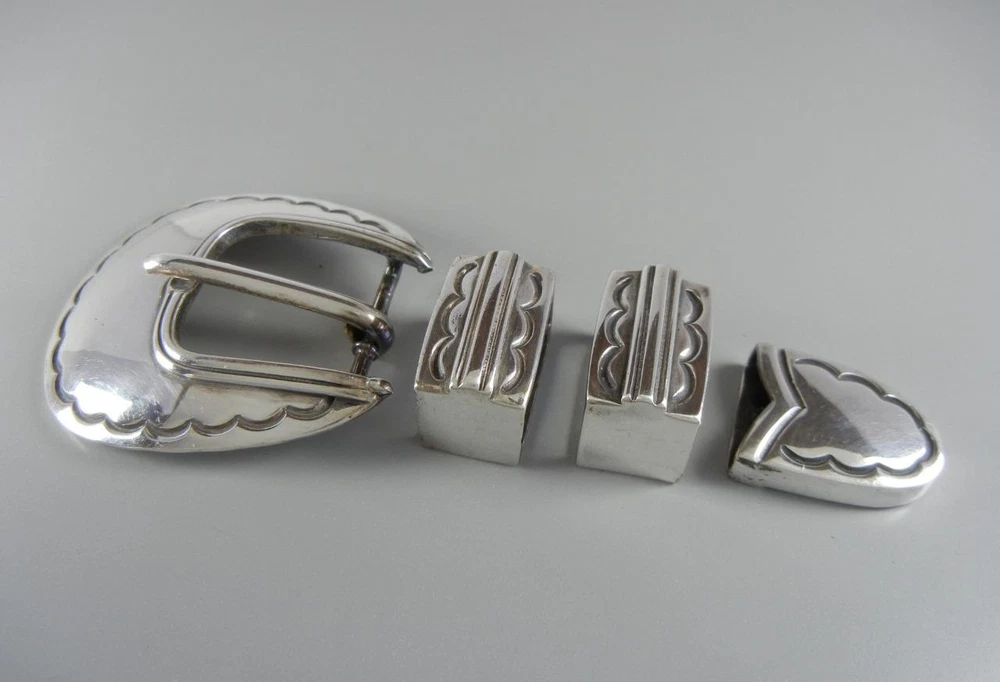 Sterling Silver Ranger Belt Buckle Set Fred Thompson Navajo Vintage Sterling Silver Ranger Belt Buckle Set Fred Thompson Navajo Vintage Click images to enlarge Description This is a great solid sterling silver ranger buckle set that fits a 7/8" wide belt, made by Navajo artist Fred Thompson of Gallup, NM. Measurements include: buckle 2 1/8 X 1 15/16" with 7/8" opening, 2 keepers 15/16 X 9/16 X 11/16" high, and tip 1 X 13/16". The set has been lightly buffed, and total weight is solid at 66.5 grams. Condition is very good! The leather display is not included. Payment Payment is expected within 3 days of auction. Shipping Shipping and handling in the US includes tracking . All items are packaged with bubble wrap and box. I am happy to combine shipping when possible. Please contact me for the discount rate, and please do not pay until you receive a combined invoice. Terms of Sale Most items are vintage and or previously owned. Please note condition in the description. Thank you! Pictures sell! Auctiva offers Free Image Hosting and Editing. 300+ Listing Templates! Auctiva gets you noticed! THE simple solution for eBay sellers. Track Page Views With Auctiva's Counter