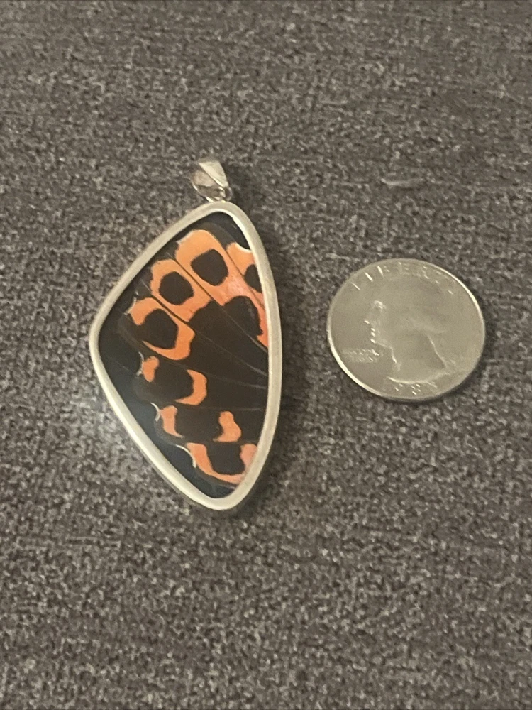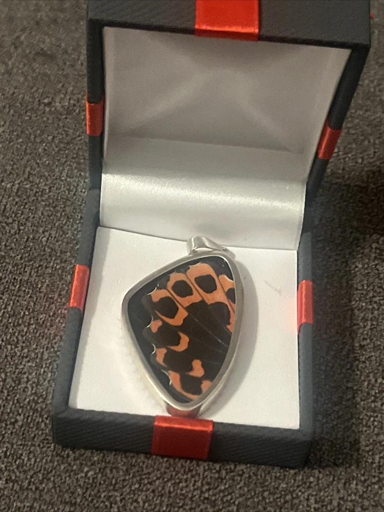 This stunning necklace is a must-have for any jewelry collection. Crafted with authentic scarlet tiger moth wings, this piece is both unique and elegant. The reversible design allows for versatility in styling, making it perfect for any occasion. The intricate details of the wings are sure to catch the eye, adding a touch of natural beauty to any outfit. Whether you're dressing up for a special event or adding a statement piece to your everyday look, this necklace is sure to turn heads. Don't miss out on the opportunity to own a piece of nature's artistry.