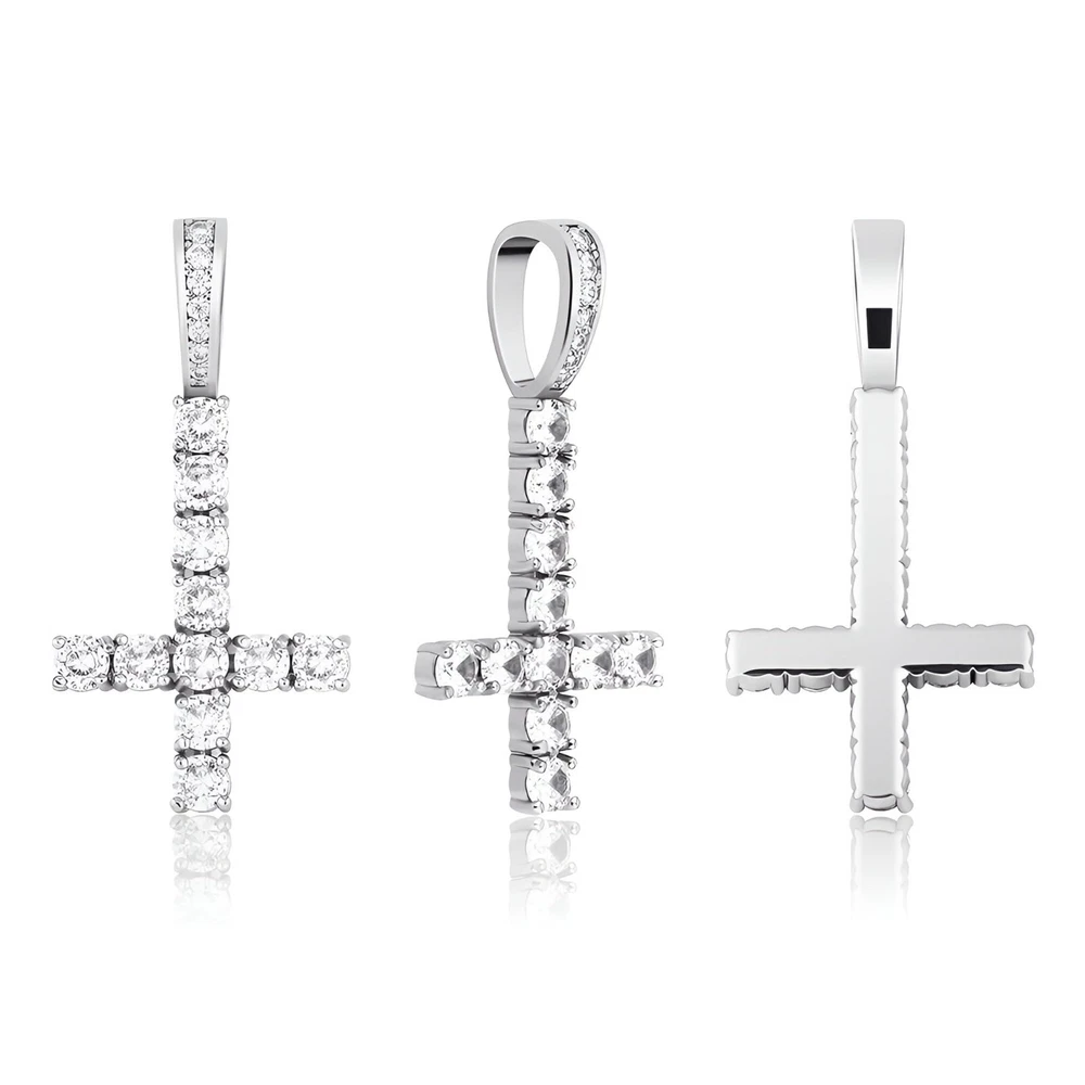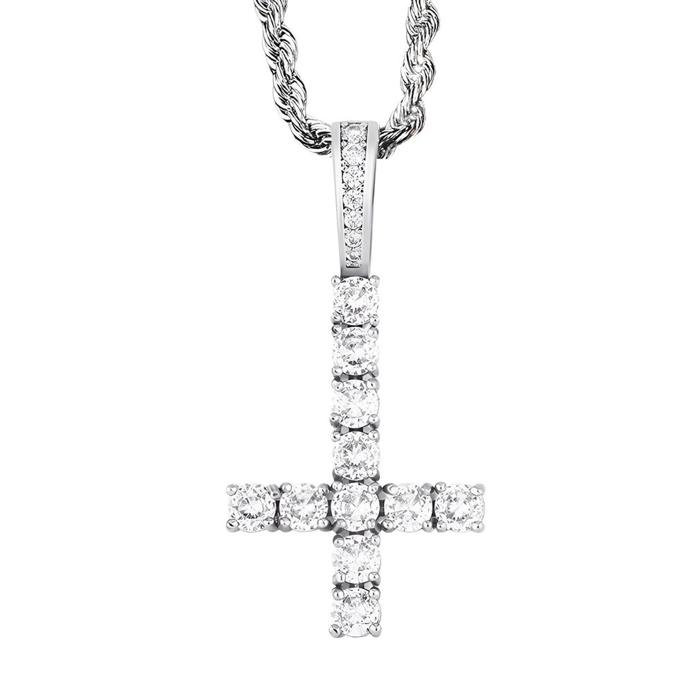 PREMIUM MATERIALS: Crafted from genuine 925 Sterling Silver with 14K gold filled plating for lasting elegance and durability DESIGN FEATURES: Upside down cross pendant adorned with sparkling cubic zirconia stones in a modern hip hop style VERSATILE WEAR: Suitable for both men and women, perfect for expressing personal style and faith STATEMENT PIECE: Eye-catching inverted cross design combines religious symbolism with contemporary fashion GIFT READY: Makes a meaningful present for special occasions, combining spiritual significance with trendy appeal