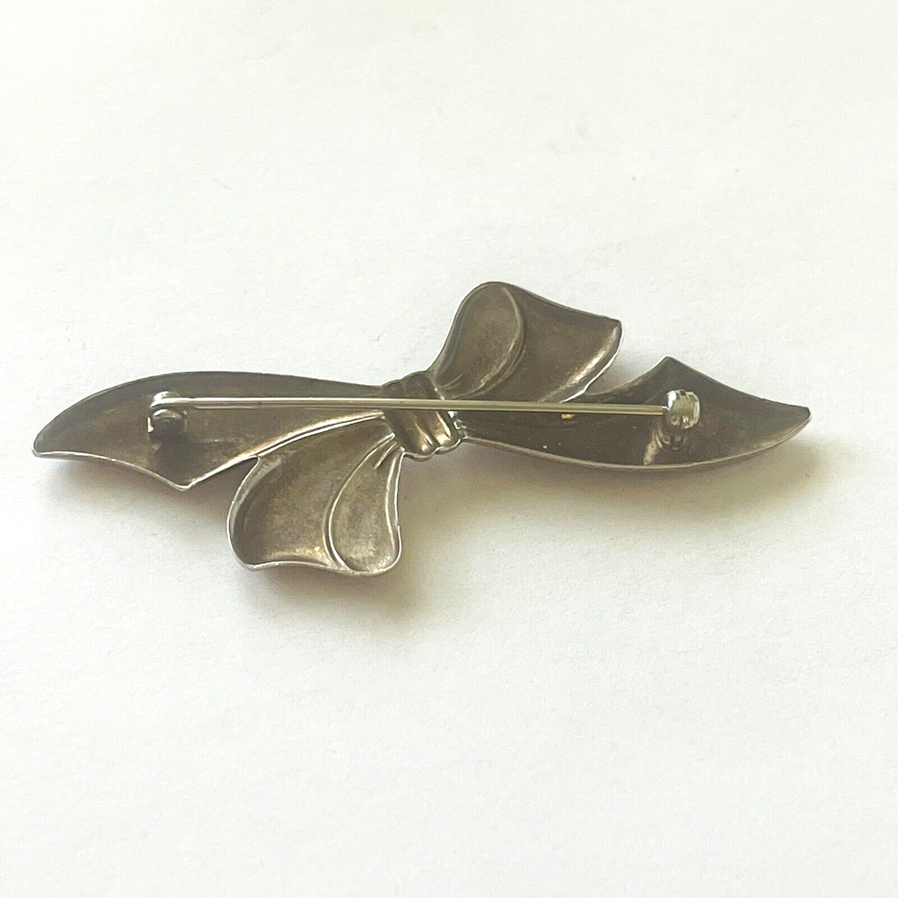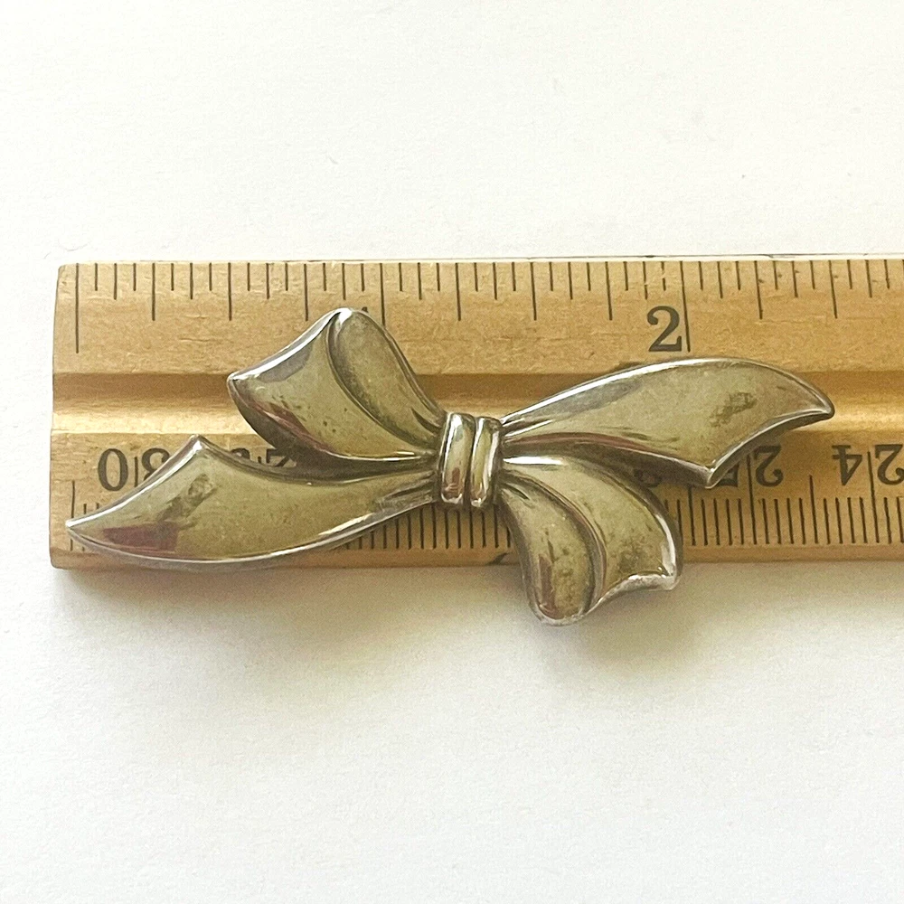 Pretty vintage sterling silver brooch / pin. The brooch features ribbon bow design. Brooch is not marked but tested as sterling silver. It measures approximately 2.5 inches by 1 inch. See photos taken with ruler for more detail on size and added description. Brooch is in very good condition. Cleaning (or not) will be left up to the buyer. Please see photos. Zoom for more detail and assessment of condition. Feel free to contact me with questions. I will create custom bundles & give discounts for purchases of more than one item/listing + combine shipping for extra savings. Quotes provided on request. All sales are final. Returns are not accepted; however your satisfaction is important to me. Please reach out if there is a problem with your purchase. Thanks! PassionatelyCollected I passionately collect things.....
