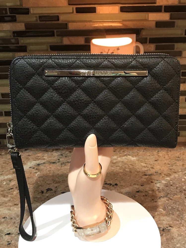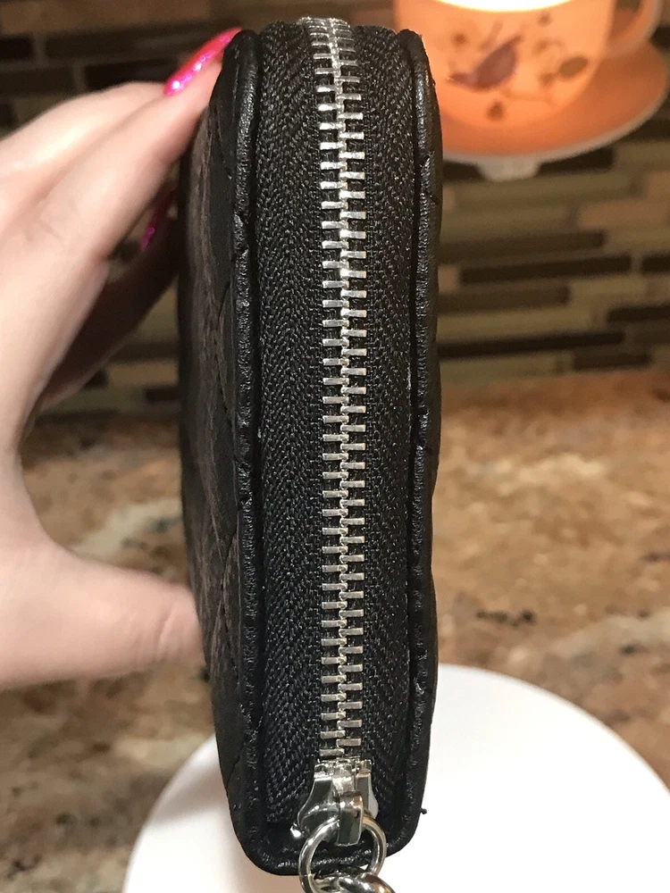 -Condition: Pre-owned ✅ ; in excellent condition -Interior wear (some rubbing/peeling in some areas) -Color: Black 🖤 -Large Organizer Wallet/Wristlet 🔥 -Separated Compartments -Credit Card Slots -ID Window -Zip Around -Perfect for traveling ✈️ 🧳 💯 -Silver Hardware