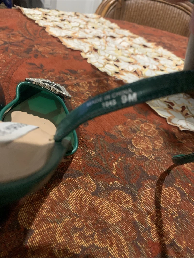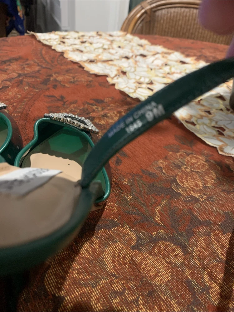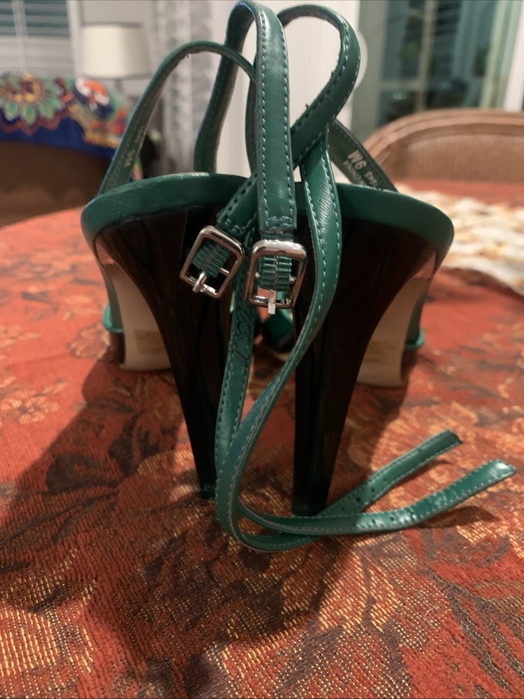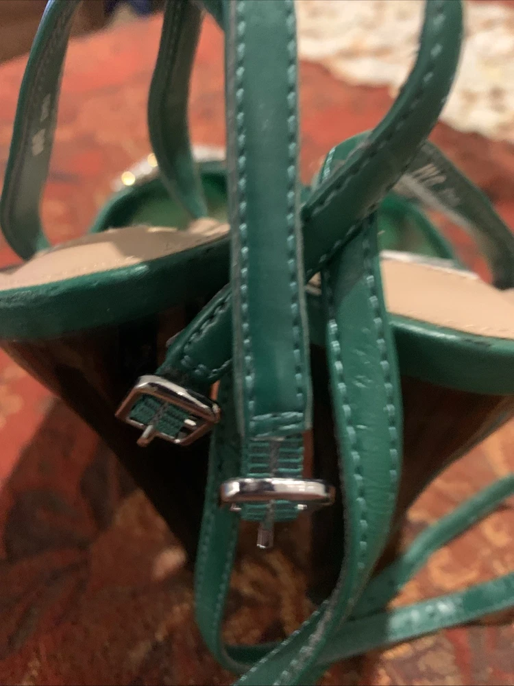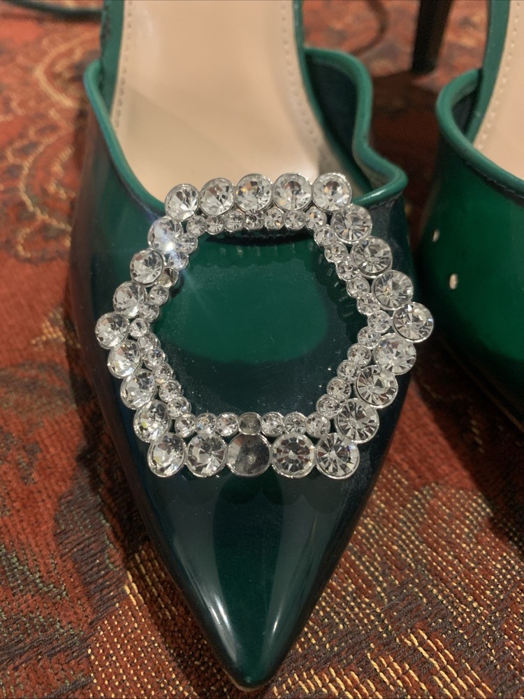 The product is a stylish Steve Madden women's high heel in a size 9, featuring a vibrant green color with a rhinestone accent on the toe. This strappy stiletto heel is perfect for a party or cocktail occasion during the summer or spring seasons. Made of synthetic material, this stylish shoe from a trusted brand like Steve Madden is sure to make a statement and add a touch of glamour to any outfit.