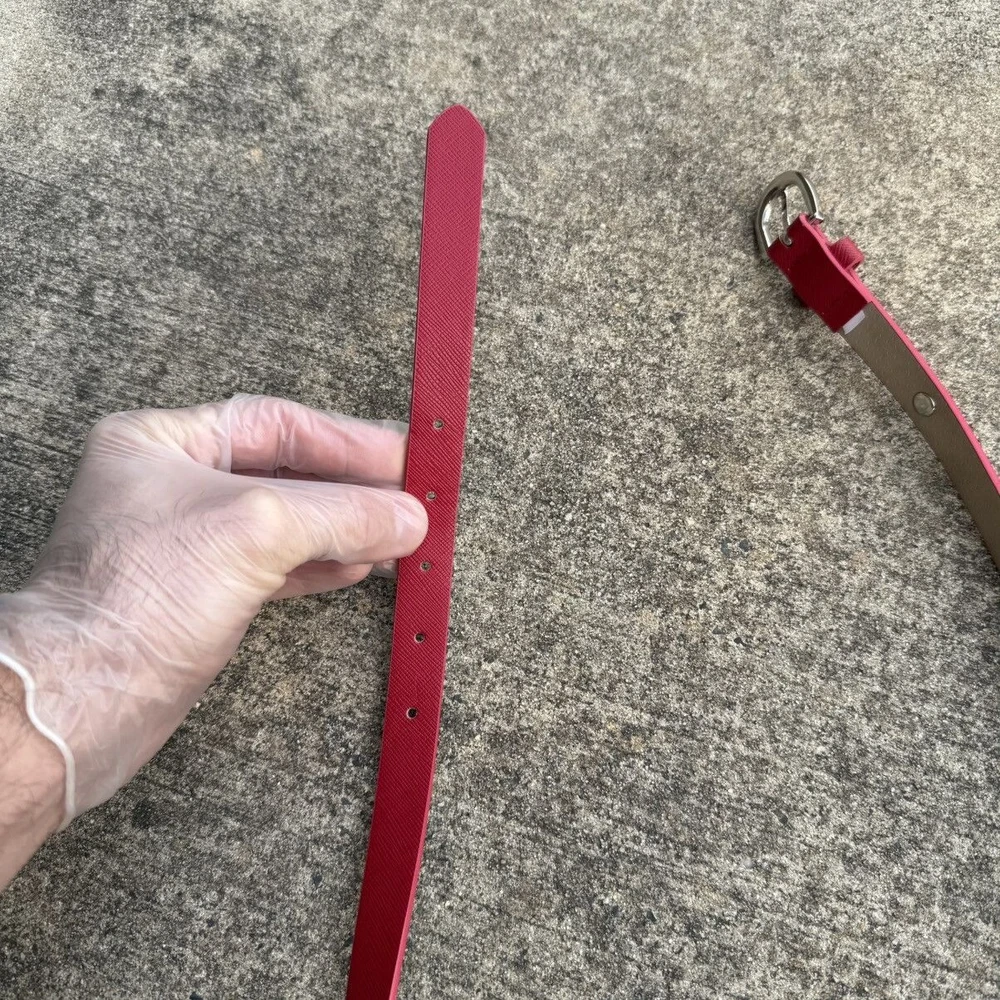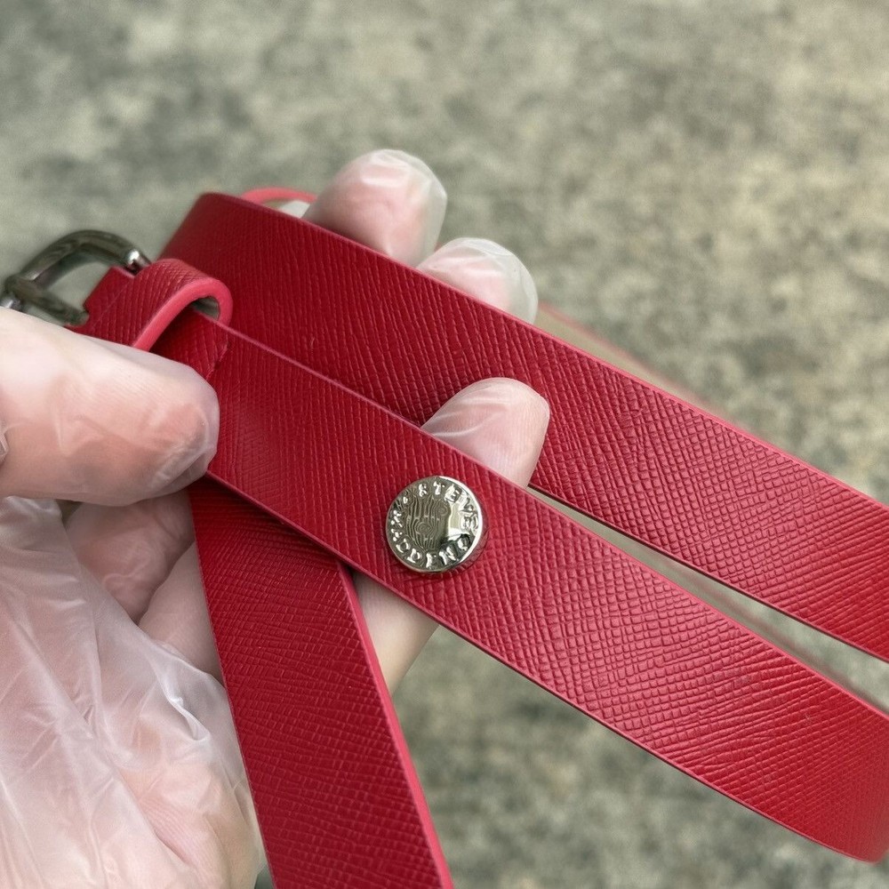 Steve Madden Red Skinny Belt Women’s – Silver Buckle – Textured Faux Leather ◯ Good condition (8/10). This item has been used or worn previously but is in great shape for its age. There are defects. SIZE: XL ~ length - 40 in; TERMS AND CONDITION: Ⓞ All Items are 100% AUTHENTIC ! Ⓞ Some items are in USED CONDITION and will show signs of wear, please see the condition of the item as detailed in the description and note any defects shown in pictures of the items. If there are any questions please reach out before purchasing. Ⓞ Item MEASUREMENTS are AMATEUR and I try my best to document the sizing accurately. If there are any questions please reach out before purchasing. Ⓞ NO REFUND / ALL SALES ARE FINAL ! Ⓞ By buying from my STORE, you agree to my POLICY ! THANKS, BUY HAPPINESS 🛒